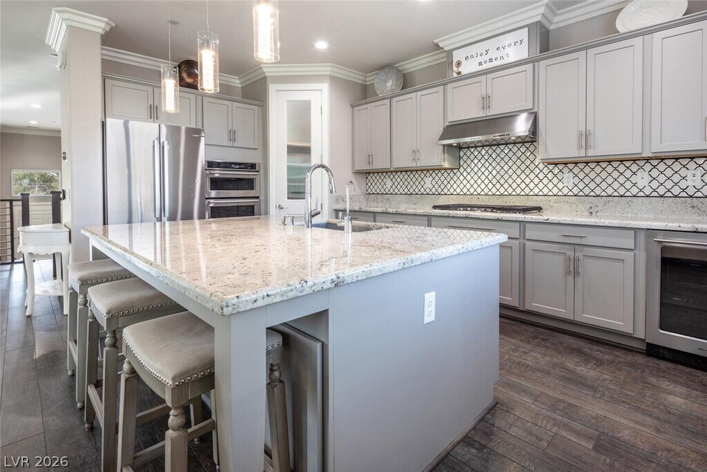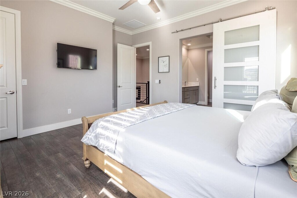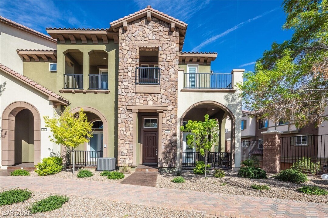 Fully Furnished!!! Enjoy luxurious living in this stunning 3-bedroom, 3-bathroom end unit at The Vita Bella Community, nestled lakeside with golf course frontage within the beautiful Lake Las Vegas master plan. Built in 2019, this unit boasts numerous upgrades and incredible golf course views, with limited lake views. Relax in the refreshing pool and spa located lakeside, with access to Lake Las Vegas. The interior features upgraded cabinets, a large island, beverage center, pantry, and gourmet stainless steel appliances. Throughout the home, you'll find wood flooring, crown molding, and more. The primary suite offers a large upgraded walk- in closet and a primary bath with dual sinks and a walk-in shower. Additionally, there's a convenient desk/study area at the top of the stairs. Enjoy the wrap-around porch and balcony, perfect for taking in the scenic views. With a 2-car garage and ample space, this end unit is a true gem in a prime location. LLV Sportsclub access included.