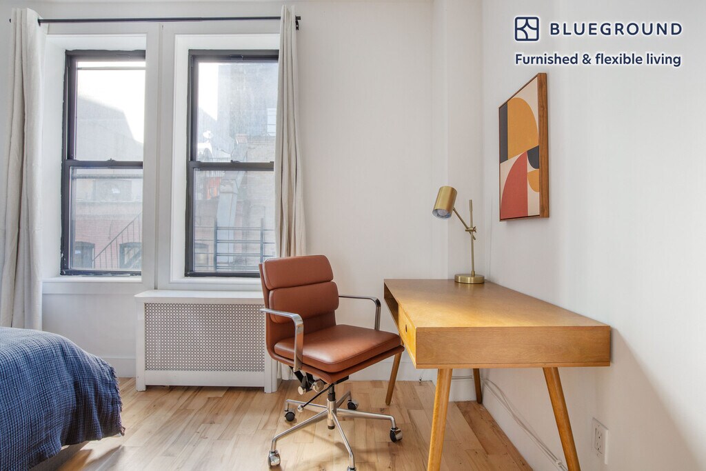 Discover the best of New York, with this two bedroom apartment in Midtown West. It’ll be easy to simply show up and start living in this furnished apartment with its fully equipped kitchen, living room, and our dedicated, on-the-ground support. (ID #NYC1248) The advertised rate of $7,480/month is the lowest available price, based on a 4 month(s) and 5 day(s) stay with a move-in date of January 26, 2026. If you’re looking for a 1-year stay, the rate is $7,230/month. Rates vary depending on the duration of stay, season, and other parameters. For exact pricing and additional pricing components, please visit our website and enter your desired move-in and move-out dates. The rate is applicable when billed upfront; it can be higher if billed in multiple payments. Brokers are welcome to reach out. Were you looking for an unfurnished lease? Try Blueground instead and upgrade from unfurnished to furnished living: - Furnished at rates comparable to unfurnished - No setup or furniture costs - save thousands - Move-in ready - save time, just bring your suitcase Designed with you in mind As with any Blueground apartment, you’ll find a thoughtfully designed space complete with beautiful furniture and a fully equipped kitchen in this two bedroom property. And, thanks to our superior quality mattresses, luxury linens, and towels, you can relax knowing you’ll always feel comfortably at home. When you’re ready for some fun, you can take in the New York vibes or bring the entertainment to you with the premium wireless speaker or smart TV. This apartment also offers in-apartment laundry. Sleeping arrangements King Bed, 70.8in/180cm Queen Bed, 63in/160cm Amenities Building amenities unique to this two bedroom apartment include an on-site: - Doorman - Dryer - Elevator - Washing machine - Lounge - Pets allowed Arrival and ongoing support The entire apartment is yours to enjoy! Throughout your stay, you’ll have access to our Client Experience team through the Blueground App. You can schedule additional cleanings, submit maintenance requests, and view our neighborhood recommendations with just a few taps. We’ll share all details upon confirmation of your stay. Ideally Located This furnished apartment is located in Midtown West, also known as Hell’s Kitchen. It is one of the city’s most iconic neighborhoods. Home to the bright lights of Times Square and Broadway, the area is constantly buzzing with activity. Along Restaurant Row diners can find a wide variety of flavors to please the extremely diverse crowds. There are countless options to satisfy any craving at any time of day. Midtown West offers serene strolls along the Hudson River, perfect for spending time outdoors on a sunny day. The pier mainly consists of sightseeing boats, which offer a unique way to experience the city. Close by are the relaxing corners of Bryant Park and the New York Public Library. The Midtown West area is easily accessible by public transport. Historic Grand Central Station is only a 20 minutes walk away. Other things to note Building amenities may have an extra cost. This Blueground apartment has flexible lease options, allowing you to book it for one month, a year, or more. Pets are welcome, though weight limits and breed restrictions apply and may incur fees. Brokes CYOF. We take great pride in ensuring every photo displayed is shot in our own units with our actual furnishings. That said, we regularly refresh our decor and furniture arrangement, which may differ from what’s pictured. [SI]