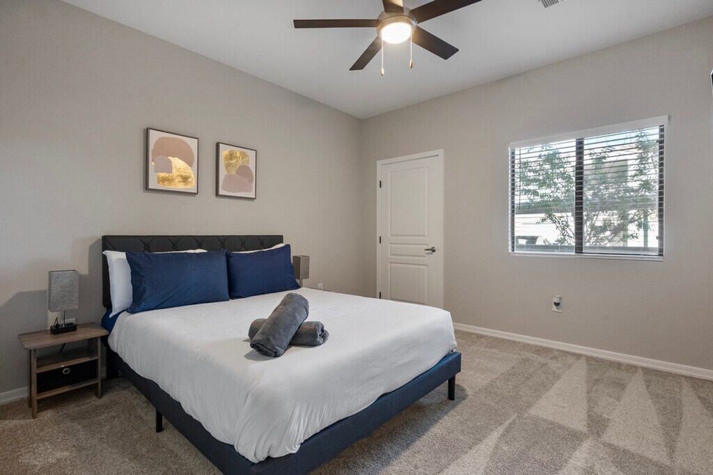 Feel at home in this charming 1-bedroom, 1-bath apartment located in North Phoenix by I-17, just 10 miles from TSMC. This apartment offers a cozy living space with a small patio, perfect for enjoying the Arizona weather. With central AC and heating, you can stay comfortable year-round. The apartment features a full kitchen and a dining set, making meal preparation and dining a breeze. Relax in the living area with a 65" smart TV or unwind in the bedroom with a 43" smart TV. The apartment also includes a washer and dryer for your convenience. Enjoy the convenience of assigned parking, covered parking, and an EV charger. The community also offers a pool, gym, grill area, common area with office space, mailroom, Amazon Locker, and gated access. Situated in North Phoenix, this apartment is conveniently located near several hospitals, including HonorHealth Deer Valley Medical Center (1.3 miles) and Banner Thunderbird Medical Center (7.1 miles). The neighborhood offers easy access to amenities and attractions, making it an ideal location for various lifestyles. The apartment is pet-friendly, allowing you to bring your furry friends along. Please be mindful of community rules and regulations during your stay. The apartment is equipped with a desk and chair, providing a comfortable space for remote work. Fast WiFi ensures you stay connected and productive. [SI]