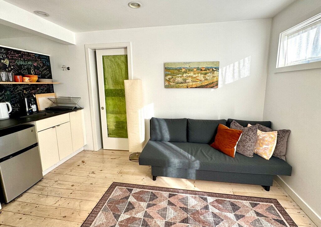 Feel at home in this fully sustainable studio in Boston's Jamaica Plain neighborhood. This award-winning "deep energy retrofit" renovation features passive solar design, rooftop solar panels, recycled building materials, super insulation, and triple-glazed windows. This studio unit has a private entry, a separate alcove for sleeping, and a fully equipped kitchenette. The kitchenette includes a small fridge/freezer, microwave, toaster, coffeemaker, and induction hotplate. A "minisplit" air-source heat pump provides energy-efficient air-conditioning and heating. Guests can share the outdoor patio space in the warmer months. A futon is available for extra sleeping space. Enjoy a unique and comfortable stay in the Jamaica Plain neighborhood. Smoking is prohibited inside, on the patio area, and in the yard. Also, candles or open flames are prohibited. Registration Number: STR-413505 [SI]