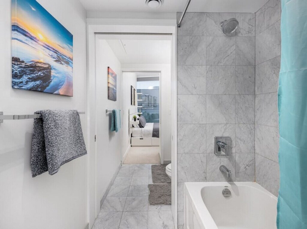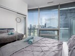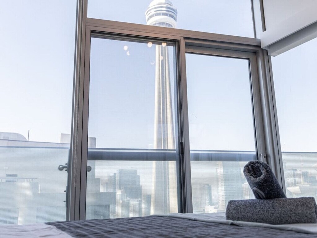 Feel at home in this cozy 2-bedroom, 1.5-bathroom suite in downtown Toronto, located on the 30th floor with a balcony. Wake up to views of skyscrapers and the sparkling CN Tower, with top city attractions just steps away. This comfortable suite has everything you need to feel right at home, including a fully functional kitchen with tea, coffee, a kettle, a coffeemaker, and a toaster. A washer and dryer are available with supplies, and the 1.5 bathrooms are equipped with towels, shampoo, conditioner, body wash, a hair dryer, and other toiletries. Paid underground parking with in/out privileges is available upon request for $20 per night ($10 per night for reservations of 20+ days). A travel crib (for babies 0-18 months) and bed rails are available for $5 per item per night. Pets are allowed in the apartment with a fee of $10 per pet per night; confirm availability prior to booking. Steps from the Air Canada Centre and Union Station, this apartment is within walking distance of the Skydome, CN Tower, Aquarium, Financial District, and hundreds of restaurants. The Eaton Center and Queen Street fashion district are also nearby, with easy access to the subway, GO station, a grocery store, LCBO, and TD bank. According to the condo rules, information about guests must be provided to the condo management prior to arrival, including names and ID details. Guests whose names or ID do not match the information given are not allowed into the building. [SI]
