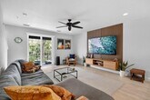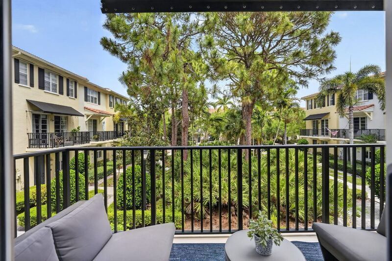 Courtesy Of David Marshall & Associates. Stunning, pristine three bedroom, three and half bath residence located in the highly desirable Greenwich neighborhood of Abacoa. This rarely available home offers a thoughtfully designed layout with exceptional finishes throughout. The first floor features a private bedroom with a full bath and walk-in closet—ideal for guests or a home office. The main living level showcases a stunning chef's kitchen complete with quartzite countertops, custom cabinetry, and designer hardware. The open concept space flows beautifully into a light-filled dining area and living room, highlighted by a custom built entertainment center and an impressive 80 inch TV perfect for entertaining. A powder room is also conveniently located on this level, along with a charming balcony overlooking a peaceful courtyard fountain—an ideal spot to relax with your morning coffee. Upstairs, you'll find two additional bedrooms, including a spacious primary suite featuring dual closets and a large ensuite bath with double vanities, a separate walk-in shower, private water closet, and an additional walk-in closet. Additional features include full hurricane-impact windows, new smoke detectors, and a two-car garage w/epoxy flooring for added convenience and peace of mind. Residents of Abacoa enjoy close proximity to Roger Dean Chevrolet Stadium, as well as an array of restaurants, shopping, golf, tennis, pickleball, and community events, including concerts and food trucks at the amphitheater. Zoned for A-rated schools, this home offers the perfect blend of luxury, lifestyle, and location. A truly exceptional opportunity, available July 5th.