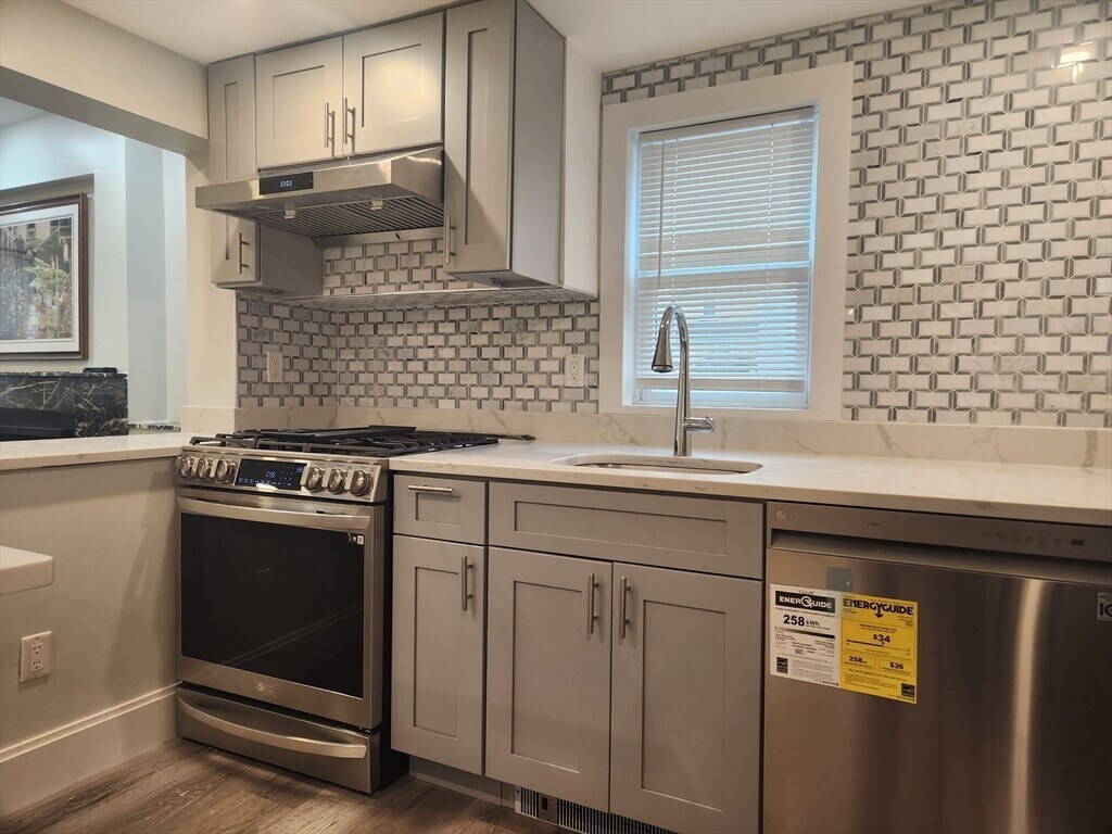 Two Bedroom Apartment in a very nice neighborhood in Quincy!! Plenty of natural light which in combination with all recesed lighting throughout,make this newly renovated unit,gleaming bright! Beatiful kitchen with all newer cabinets,granite countertops and stainless steel appliances. A nicley done,tiled Bath and shower! In Unit laundry,high efficiency heating and cooling system! Off Street parking! Short walk to the T-Station and a very short drive to Quincy Center and Highways! Don't miss it!! MLS# 73472604