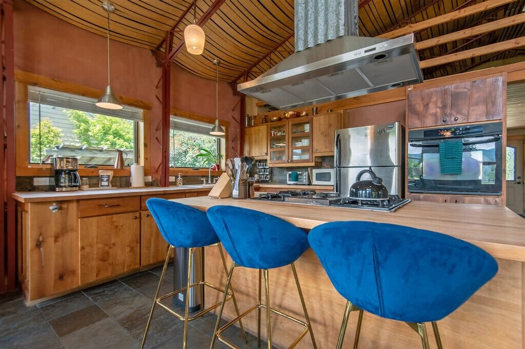 Welcome to this charming cabin, a cozy and peaceful retreat that exudes a creative vibe. Complete with a spacious kitchen, airy living area, sprawling backyard, and a warm wood-burning stove, this lovely home is situated just 2 blocks from downtown Victor and the town park, and only 40 minutes (26 miles) from Jackson, making it an excellent starting point to explore the wonders of the region. This home boasts a unique and artistic design, featuring a steel frame construction and handcrafted details. Each of the three bedrooms is cozy and comfortable, furnished with new mattresses. The living space is open and bright, complemented by a collection of games and a wood-burning stove, perfect for indoor activities after a day of skiing, hiking, or rafting. Passive solar windows keep the space warm during the day, while electric heaters and a wood-burning stove maintain comfort on chilly evenings. The open kitchen is a delight for cooking meals, equipped with a commercial gas range. Sleeping arrangements cater to groups of 3-6 people, with a California King bed and a Tuft and Needle mattress in the primary bedroom, and queen beds in the other two bedrooms. For families with babies or toddlers, a pack-n-play and high chair are available. In the summer, the amazing backyard features a fire pit with built-in benches and produces delicious fruit from plum and apple trees, along with a vibrant garden. Located just 2 blocks from downtown Victor and the town park, this cabin offers easy access to local attractions. It's only 40 minutes (26 miles) from Jackson, providing a great base to explore the region. Distances to National Parks include Yellowstone - West Entrance (1 hr 46 min, 96.7 miles), Yellowstone - South Entrance (1 hr 51 min, 82.1 miles), and Grand Teton (44 min, 29.7 miles). You can also access hiking and activities in the Tetons from Teton Valley, known as the quiet side of the Tetons. Distances to Ski Resorts are Grand Targhee Ski and Summer Resort (33 min, 20.6 miles) and Jackson Hole Mountain Resort (36 min, 26.0 miles). Regional Airports include Idaho Falls, ID (1 hr 12 min, 66.7 miles), Jackson, WY (49 min, 34.1 miles), and Bozeman, MT (3 hr 33 min, 193 miles). Nearby towns include Driggs, ID (12 min, 8.4 miles), Victor, ID (walking distance: 6 minutes to Victor Valley Market), Jackson, WY (36 min, 24.8 miles), and Teton Village, WY (36 min, 26.0 miles). Guests are encouraged to treat the home as their own and respect the rules, neighbors, and local community. The number of people at the property should not exceed the maximum sleeping capacity. Quiet hours are from 9 pm to 8 am. No events, parties, large gatherings, weddings, smoking, or vaping are allowed in the home or on the decks. An additional charge will be applied if any smoking-related waste is found on the property. Exterior lights should be turned off at night to preserve the dark skies. Drive slowly in the neighborhood to respect children, pets, and wildlife. A maximum of two licensed vehicles is allowed in the driveway and garages. No riding of snow machines, dirt bikes, or ATVs in the subdivision or at the rental property. Candles or incense should not be burned in the home, and no fireworks are allowed on the premises. Keep all main entry doors locked when not occupied. Fines will apply for violations, including leaving garbage in the house or litter on the grounds, failure to disclose or clean up after pets, smoking in the house or garage, failure to follow house rules and respect posted signs, failure to follow check-out procedure, mistreatment of the hot tub, or violations of local laws. A minimum $500 fine will be applied for smoking, vaping, or marijuana use in the house, violation of house rules, posted signs, laws, or failure to vacate at check-out time. A full team is available 24/7 to assist guests as needed. Although it may seem like a new listing, the cabin has been a favorite in the vacation rental market for many years. The property is now managed by a local property manager in Driggs to ensure guests have a pleasant stay.