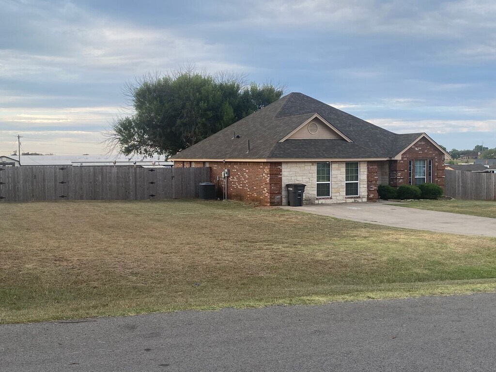 Located in the sought-after Brock School District, this spacious 4 bedroom, 3 bathroom brick house is located at 150 Hunters Circle, Weatherford, TX. The home features a fenced backyard, storage building, and easy access to I 20. Inside, you'll find a built-in microwave, dishwasher, pantry, and large walk-in closet. Don't miss out on this fantastic opportunity to make this house your new home!