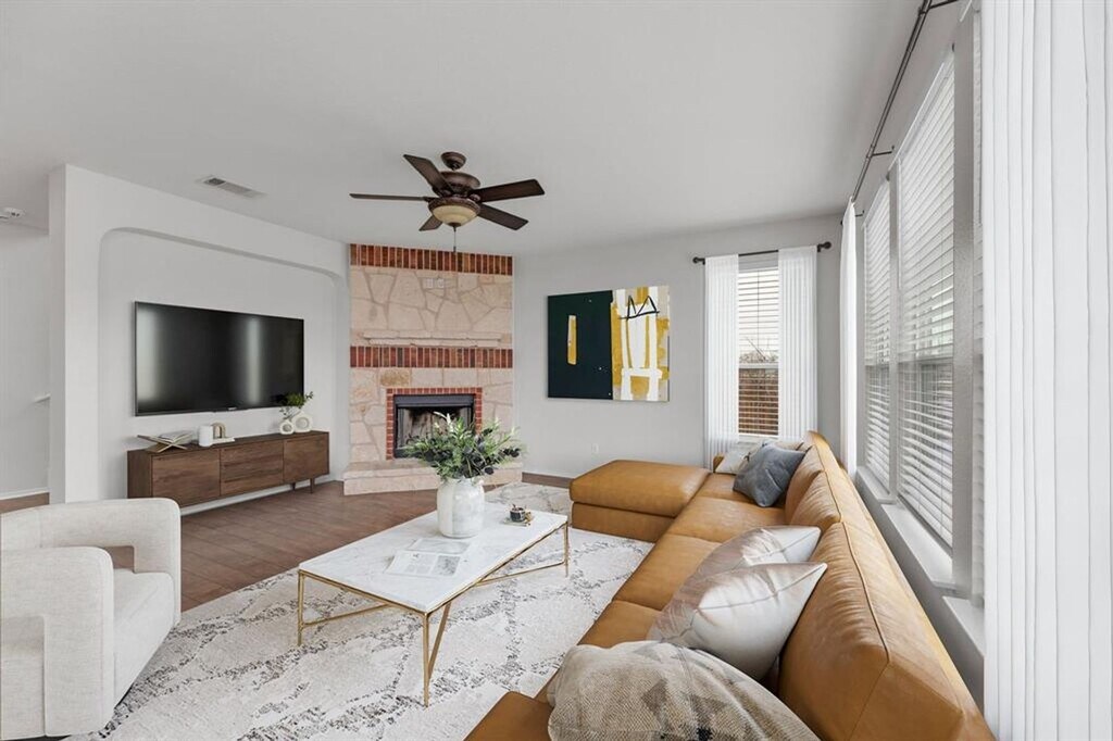 Available now, Located at 150 Jasmine in the Waterleaf community of Kyle, this four bedroom, two and a half bath home sits at the top of a cul de sac on an oversized lot backing to a quiet greenbelt with no neighbors directly behind. Built in 2014 and well maintained, the home has been recently painted and features no carpet throughout, making it clean and move in ready. The layout is open and filled with natural light from large windows across the main living areas. The kitchen is spacious and functional, offering stainless steel appliances, a center island, and a breakfast bar that opens directly to the dining and living spaces, making everyday living and entertaining easy. The living room features a stone fireplace that gives the space a comfortable, relaxed feel. A bonus room on the main level works well as a home office, second living area, gym, or playroom. Upstairs, the bedrooms are well sized and thoughtfully arranged. The primary suite provides room for large furniture, a walk in closet, and an ensuite bath with double vanities. Outside, a covered patio and extended custom deck look out over the greenbelt. The nearly quarter acre fenced backyard offers space to relax, host friends, or enjoy time outdoors with pets. Waterleaf includes a neighborhood pool, playground, and community events, with convenient access to I 35. Kyle continues to add new shopping, dining, and everyday conveniences nearby. Residents are minutes from the new Sprouts Farmers Market, H-E-B Plus!, EVO Entertainment, and Kyle Crossing. Local favorites like Snooze A.M. Eatery are popular weekend stops, and the area’s parks, trails, and open spaces contribute to the strong sense of community. With its proximity to Austin and San Antonio, growing amenities, and established neighborhood feel, Kyle is an appealing option for buyers relocating from out of state and looking to experience Central Texas living.