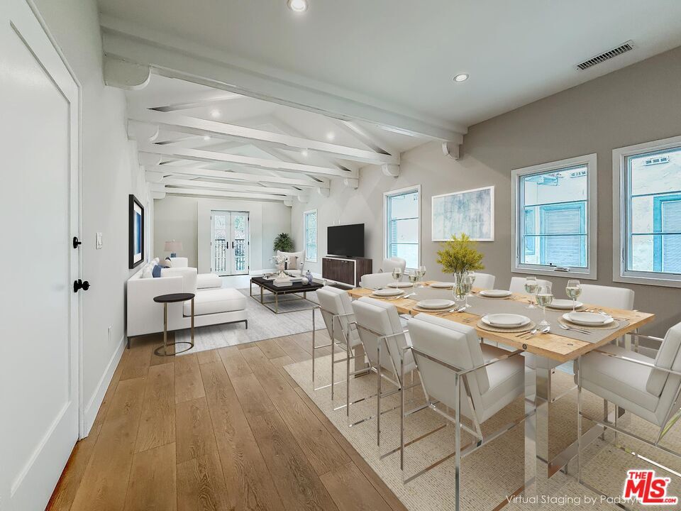 Stunning, Fully Remodeled Top-Floor 2-Bedroom Residence in Prime Beverly Hills! Welcome to this beautifully redone top-floor 2-bedroom, 2-bathroom unit offering approximately 1,350 sq ft of sophisticated living space in the heart of Beverly Hills. Every inch of this home has been meticulously remodeled with high-end finishes and modern conveniences, creating the perfect blend of luxury and comfort. Flooded with natural light, the open-concept layout is ideal for both everyday living and entertaining. The living room features vaulted ceilings with gorgeous exposed wood beams and a charming Juliet balcony that invites in fresh air and tree-lined views. The gourmet kitchen showcases sleek custom cabinetry, quartz countertops, and top-of-the-line stainless steel appliances. Luxurious bathrooms offer spa-like walk-in showers, floating vanities, designer tilework, and luxury fixtures. Additional highlights include new laminate flooring throughout, dual-pane windows, recessed lighting, stylish light fixtures in the bedrooms, ample closet space, and in-unit washer and dryer. Central air and heat provide year-round comfort, and off-street parking is included.Located just minutes from world-class dining, shopping, and entertainment, this home offers an exceptional lifestyle in one of Los Angeles' most prestigious neighborhoods. A rare opportunity to lease a top-floor luxury residence with unique character and modern style! Schedule your private showing today! MLS# 25617549