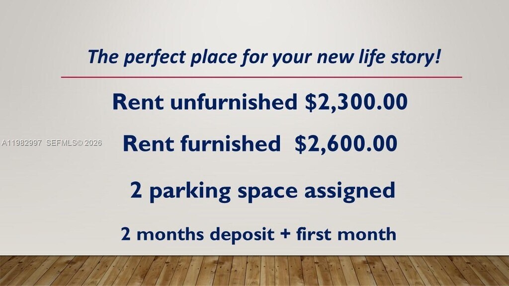 2 bedroom unit, painted, lake view, pool, gym, clubhouse and playground. Close to malls, main highways and restaurants. 2 Assigned parking lots. Unfurnished $2,300.00 Furnished $2,600.00. MLS # A11982997