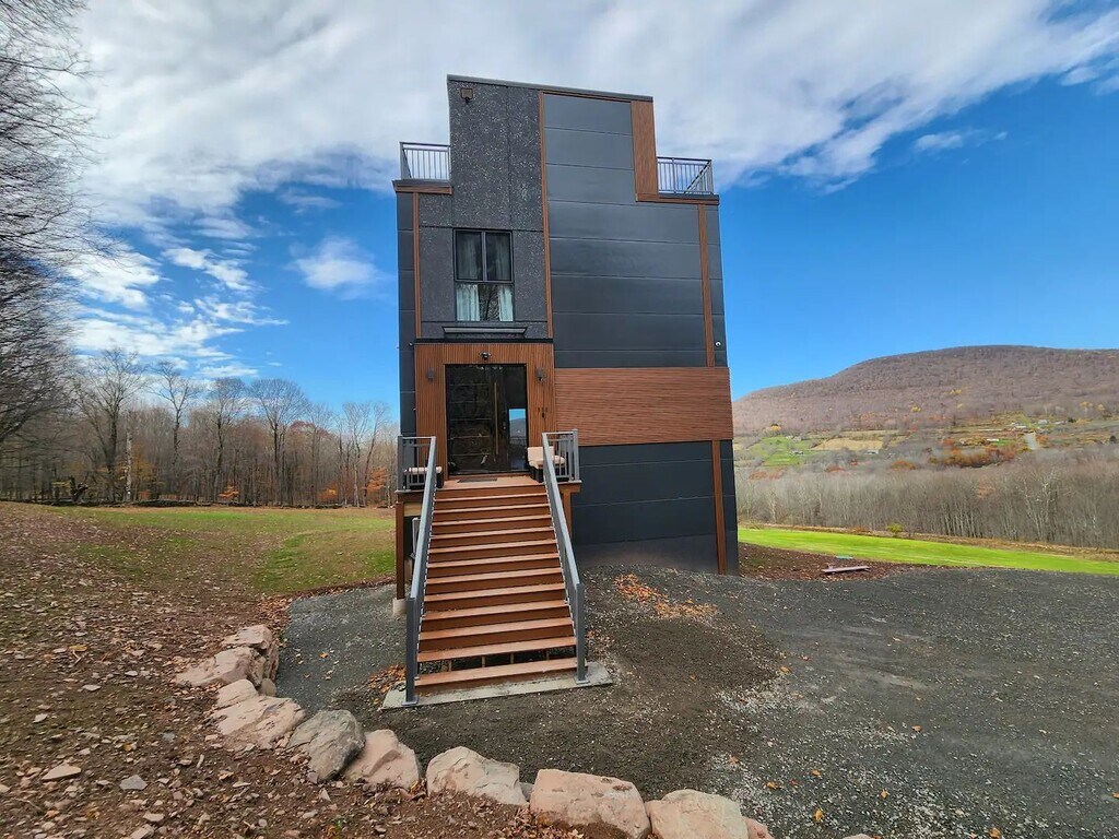 Modern Mountain Retreat with Rooftop Hot Tub – Flexible Lease Options 150 Valleys End Road, Roxbury, NY 12474 Enjoy modern living in the Catskills on 22 private acres. This beautifully designed mountain home features floor-to-ceiling windows with panoramic views, a flat roof with rooftop hot tub, and spa-inspired amenities. Inside you’ll find open living spaces, a steam room, jetted bathtub, and high-end finishes throughout. Energy-efficient design includes triple-glazed windows, continuous exterior insulation, propane radiant heat, and mini-split HVAC for year-round comfort. Available furnished or unfurnished, this home offers flexible lease terms (long-term or month-to-month). Pets are welcome. Rent: $4,450 / month Deposit: $4,450 Lease Options: Long-term or month-to-month Furnished or Unfurnished Pets Allowed Don’t miss the opportunity to live in a modern home surrounded by scenic mountain beauty, just minutes from Roxbury’s shops, dining, and outdoor recreation.
