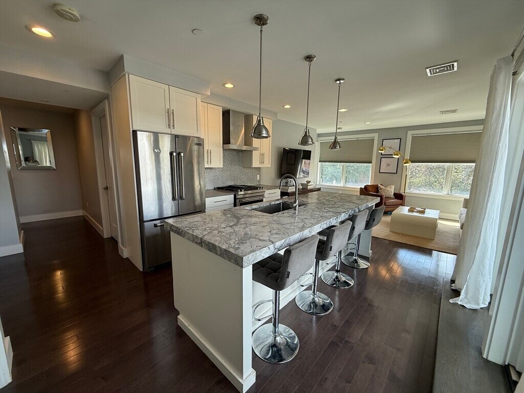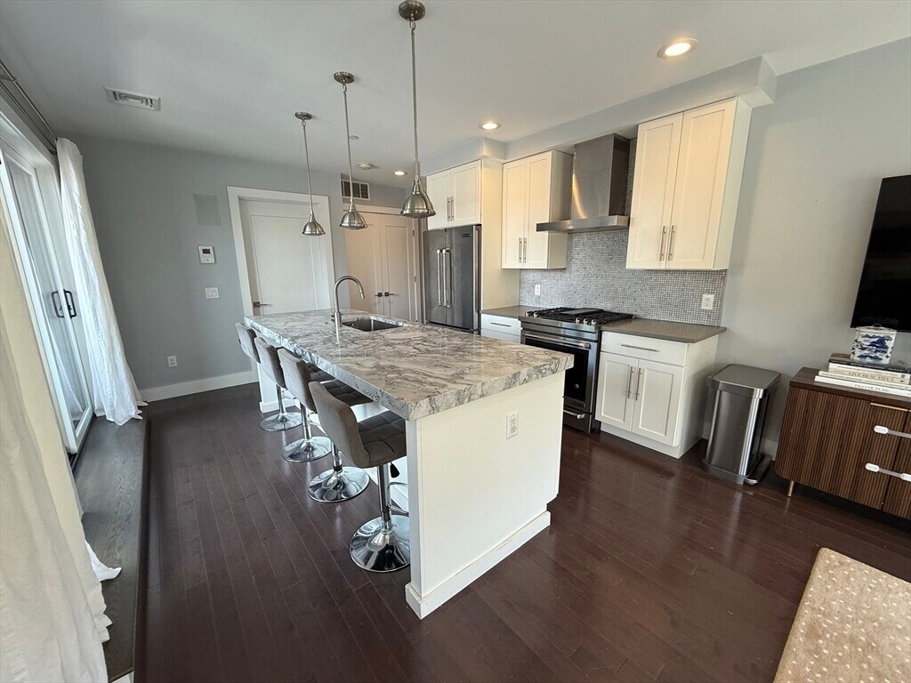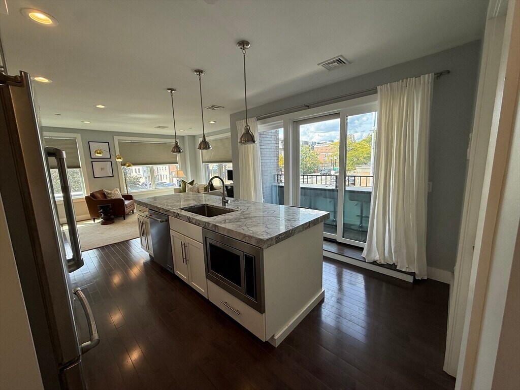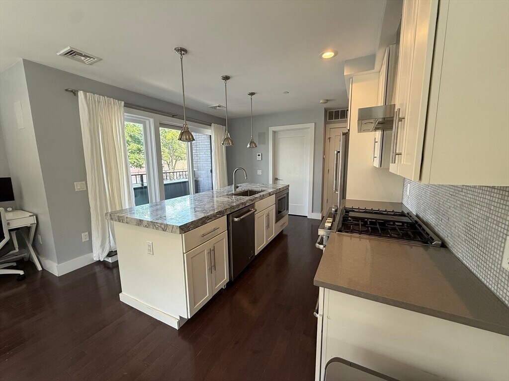 Rarely available sun-drenched corner condo in the desirable 2018-built 150 West Broadway. This modern 2 bed,2 bath unit features an open-concept kitchen and living area with white shaker cabinets,quartz countertops,and Jenn-Air stainless steel appliances. The primary suite includes an en-suite bath and large closet,while the spacious second bedroom is perfect for an additional bedroom or a home office. Additional features include in-unit laundry,central air,elevator access,and a covered balcony exclusive to the unit,along with access to a large common roof deck with a shared grill. Unbeatable location just two blocks from the Broadway T Stop,close to the Seaport and South End. One garage parking space available. Available 12/1/2025. MLS# 73439700
