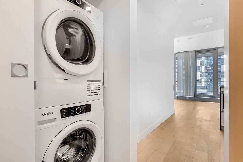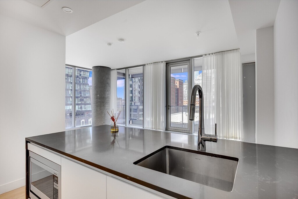 Spacious one bedroom with luxurious finishes and thoughtful design elements, heated bathroom floors. Located on the 6th floor, which offers amazing views of the terrace with an outdoor cinema and an expansive 6,000-square-foot urban garden. Walking distance of some of the top schools and colleges in the city, among them Dawson College, LaSalle College, and Concordia University. Two metro stations (Guy-Concordia and Lucien-L'Allier), the train and the future REM light rail network minutes away, making getting in and around town a snap.