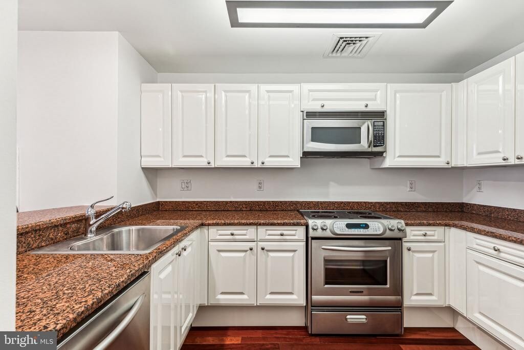 WELCOME HOME to this beautiful one bedroom, one bath home at the Ellington! The living and dining areas offer dramatic ten foot high ceilings, Brazilian cherry hardwood floors, and oversized windows that fill the home with natural light. The kitchen with breakfast bar features Poggenpohl cabinets, stainless steel appliances, Kohler fixtures, and Capao Bonito granite countertops. The bedroom is set across from the spacious spa-like bathroom, which boasts White Gioia marble tile flooring, chrome fixtures, and a ceramic sink with storage vanity. Rent includes central air and heating, water and sewer, 24 hour concierge, private fitness center, and club room. Perfectly situated in the Rittenhouse and Avenue of the Arts area, this stunning home is steps away from fine dining, one-of-a kind shopping, world-renowned cultural destinations and exciting nightlife. ** Photos are from a different unit with similar finishes and identical floor plan.