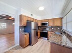 Freshly painted 2 bedroom 1 bath home with new kitchen cabinets & granite counters,stainless refrigerator,stove,dishwasher & built-in microwave. Spacious living room with cozy wood ceiling and built in shelving,wood burning fireplace & a nice laundry room. Open & large covered front porch to sit & relax. Lawn care & water included. $50.00 discount off rent for sprinkler system electric use