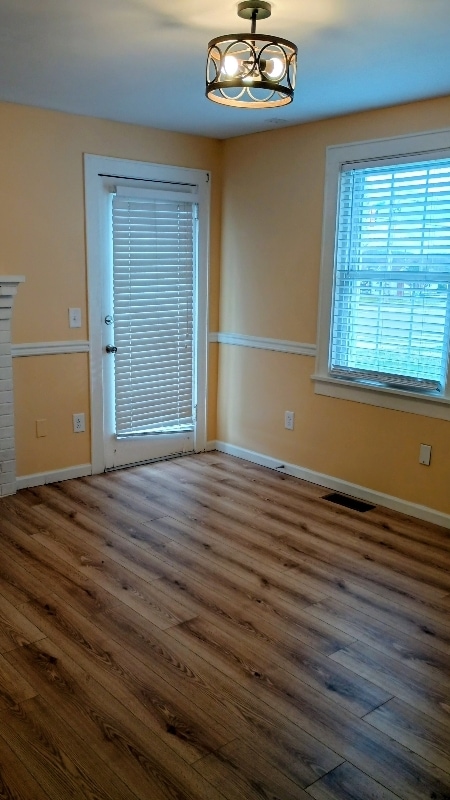 Property Id: 2421235 This is a newly remodeled duplex with a unit upstairs and one on the first floor. This unit is for the bottom floor. Features 3 bedrooms and 1 and 1/2 bathrooms. Kitchen features an oven range and a refrigerator and new cabinets and countertops. Blinds in all windows. The full bathroom has grab bars for easier in and out of the tub. Yard maintenance included.