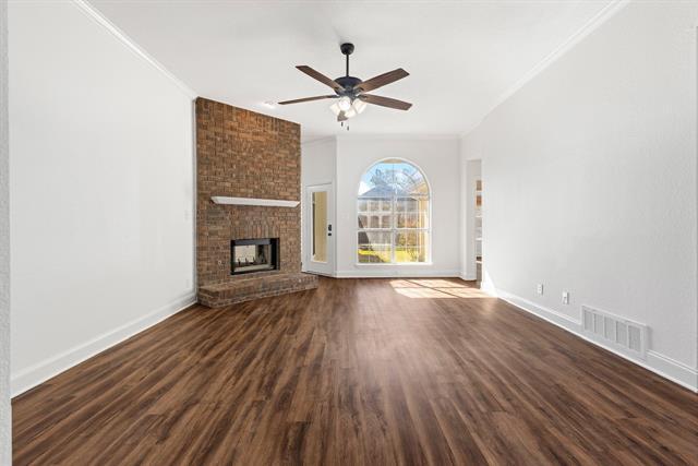 Beautifully maintained single-story brick home situated on a landscaped corner lot in a quiet, established neighborhood. This inviting home features a bright family room with a cozy fireplace and large windows that bring in abundant natural light. The open layout flows into a spacious kitchen with a large island, ample counter space, stainless steel appliances, gas range, and a double-sided fireplace shared with the dining area—perfect for everyday living and entertaining. The generous primary suite offers a spa-like bath with a soaking tub, separate walk-in shower, and ample closet space. Additional highlights include built-ins in the laundry room and a grassy backyard with a pergola ideal for outdoor gatherings. Recent updates include fresh interior paint, luxury vinyl plank flooring throughout (no carpet), a new water heater, and an upgraded electrical panel with whole-home surge protection. Move-in ready and full of thoughtful improvements. Perfectly located near DFW Airport, shopping center, & major freeways (I-35 & PGBT)