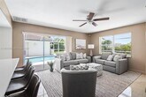 Fully furnished 3-bedroom, 2-bath single-family home featuring two spacious living rooms and a functional U-shaped layout. Modern kitchen with stainless steel appliances, large dining area, and ample storage. Enjoy a private covered pool, with patio furniture and outdoor dining space. Home includes washer and dryer, smart TVs, and double sinks in both full bathrooms. Located near beaches, shopping, and dining with easy access to Deerfield and Pompano Beach attractions. Pool and lawn maintenance included. All other utilities (electric, water/waste, internet, etc) covered by tenant. Garage NOT included.