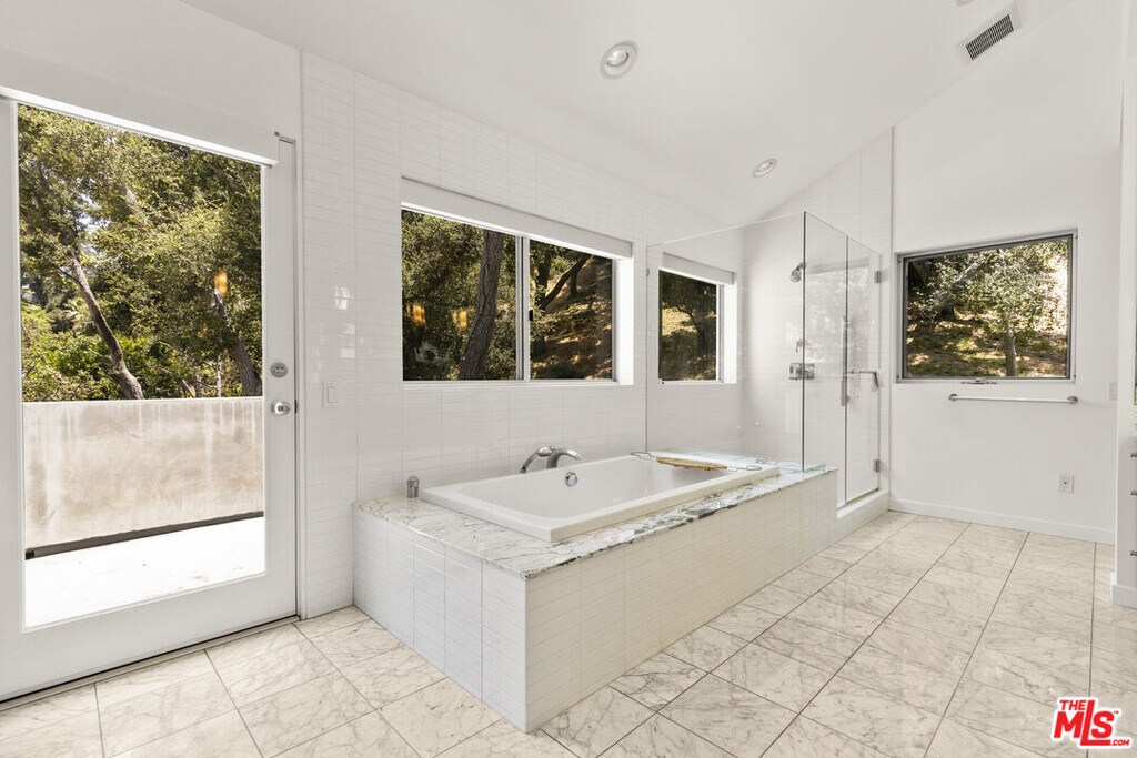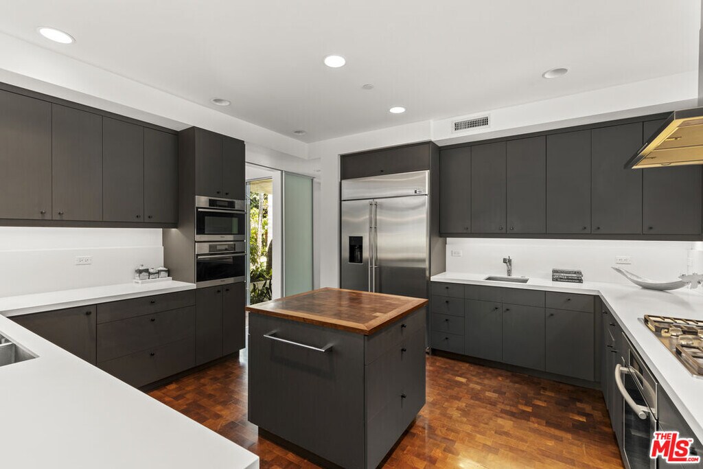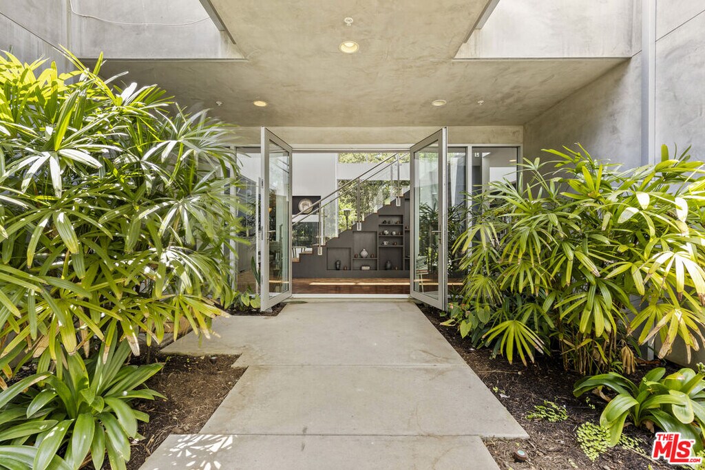 This private compound, designed by an architect for himself and his family, spans over 2.5 acres of lush, wooded grounds in the coveted lower Riviera, tucked away for ultimate seclusion down a 600 foot long driveway. A contemporary masterpiece, the residence feels like a work of art, showcasing refined design elements such as skylights, angular lines, walls of glass, and a sophisticated, loft-like ambiance. Built around mature oak and sycamore trees, a major element of the design is the connection between the living spaces and the outdoors. The main living area offers generous seating and seamless views of the surrounding greenery, anchored by 10 feet tall by 17 feet wide glass doors that disappear" to connect the room with the outdoors as well as a striking, exposed glass staircase. The chef's kitchen is outfitted with Miele and Monogram appliances, an island and a large counter with seating that opens into the dining room and living area, making it ideal for both entertaining and everyday living. Upstairs, the primary suite is a sanctuary immersed in treetop views, complete with a spa-like bathroom featuring Statuary marble, custom cabinetry, and a soaking tub. Additional bedrooms and bathrooms are equally refined with high-end finishes throughout. Over the detached garage, nestled in the tree tops, is a self-contained studio apartment with its own kitchen and full bathroom offering a flexible space perfect for guests, a home office, a peaceful meditation retreat, or ADU. Outdoors, enjoy a built-in kitchen with BBQ and wood-burning pizza oven, expansive patio spaces, and meandering gardens that offer a true sense of escape amidst nature. Mainhouse is 4,000 sqft. ADU is 900 sqft. Total sqft = 4,900 per the seller." MLS# 25559531