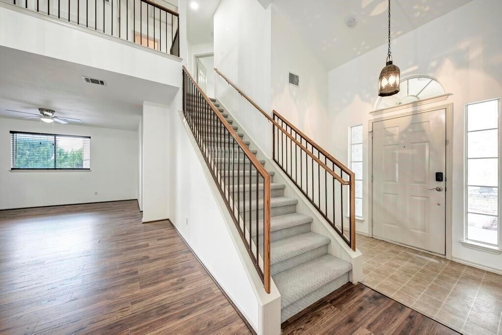 Discover this beautifully updated two-story home, ideally located in a desirable neighborhood of Sarah Creek, in PF with quick access to major highways, shopping, and dining. Thoughtfully maintained, this inviting home features an open floor plan with 3 spacious bedrooms and 2.5 baths. The bright living area offers soaring vaulted ceilings and abundant natural light, creating a warm, welcoming atmosphere. The primary suite includes a luxurious private bath and generous closet space, while multiple living areas provide flexibility for entertainment, work, or relaxation. Enjoy your private fenced backyard—perfect for gatherings or quiet evenings outdoors. A laundry room with washer and dryer and an attached garage add convenience and extra storage. Move-in ready and full of charm—schedule your private showing today!