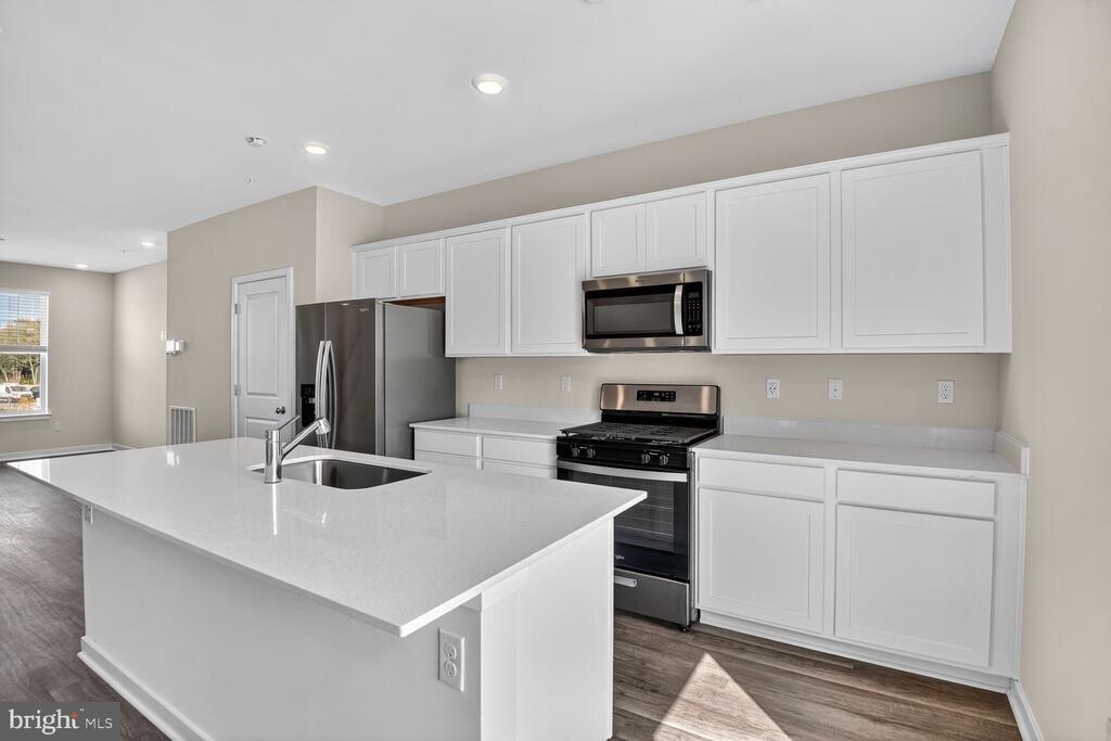 ***Minimum credit score of 650 and minimum household income of 3X the rent*** This stunning full brick front townhome offers a modern design, spacious layout, and a fantastic location. Featuring 4 bedrooms and 3.5 bathrooms, this home provides plenty of versatile living space with over 1,700 sq. ft. Enjoy outdoor living on the 12' x 10' deck just off the kitchen — perfect for relaxing or entertaining. This Regent floor plan combines the comfort of a single-family home with the convenience of townhome living. The main level features an expansive kitchen island, upgraded gray cabinetry, quartz countertops, and stainless steel Whirlpool appliances. The open-concept layout is complemented by hard-surface flooring throughout, offering both style and durability. Upstairs, the primary suite includes a spacious walk-in closet and a double vanity bathroom. Three additional bedrooms with ample closet space, a hall bath, and a conveniently located laundry area complete the upper level. Additional features include smart home technology, keyless entry, a video doorbell, and a programmable thermostat for added convenience. The home is ideally situated across from shops and entertainment, with easy access to Routes 301, 5, I-495, and Washington, DC — making commuting a breeze.