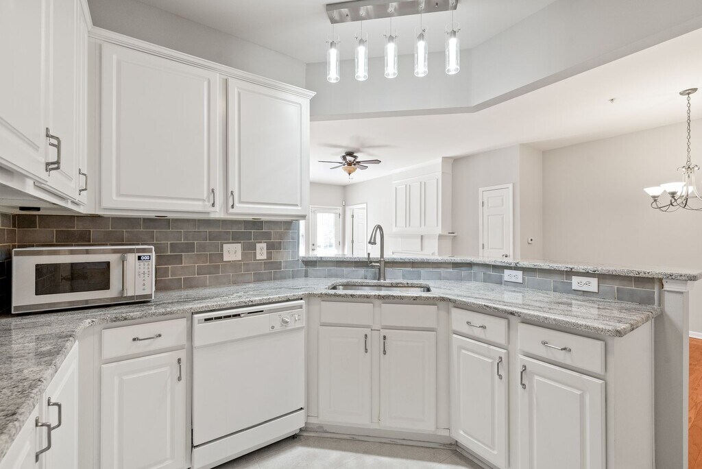 Charming, move-in-ready main-level condo located in the popular gated Belle Vista community, just steps from the new Bowl at Ballantyne. The bright interior features hardwood floors in the Great Room and fresh, neutral paint throughout. The kitchen offers granite countertops, a stylish tile backsplash, and white cabinetry. The primary suite includes a spacious walk-in closet and a well-appointed bath with dual vanities. A split floor plan provides a secondary bedroom with convenient access to an additional full bath. Residents enjoy a community pool and clubhouse, along with easy access to Ballantyne Village’s shops, dining, and entertainment