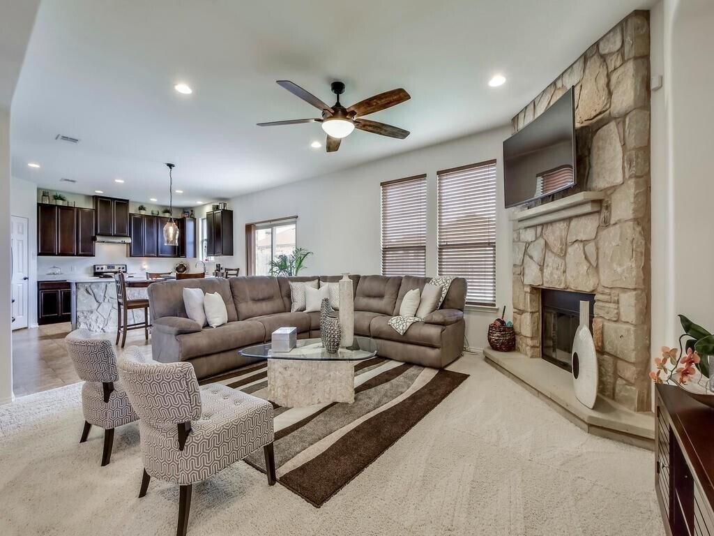 Beautifully maintained house with 3 bedrooms downstairs and 1 loft-style bedroom with full bath upstairs. Corner lot with ample yard space. Kitchen with granite countertops, stainless steel appliances and stonework on island to match fireplace. Attention to agents and applicants: Please submit a complete application in order to be reviewed, best-qualified applicant, owner, and management company reserve the right to take the best offer, income, ID, and VOR documents are required for all applicants. AGENT MUST SHOW THE PROPERTY Pet deposits start at $500 and vary per property.