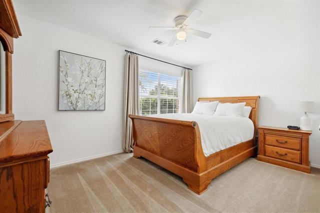 Beautifully well maintained home with modern updates! The home features a functional and inviting floor plan. The spacious living room offers a cozy wood-burning fireplace, perfect for gatherings, while the split-bedroom design provides added privacy with an oversized primary suite. This kitchen is a standout, showcasing sleek quartz countertops, stainless steel appliances, and ample storage. An outswing French door leads to the backyard, creating a seamless indoor-outdoor flow, ideal for entertaining. Additional features include a garage with durable epoxy flooring and built-in shelving. There is also a charming storage shed, designed to resemble a small house, offers versatile possibilities, it's currently being used for storage, but easily adaptable as a playhouse or creative space. Located in a vibrant community with access to clubhouses, scenic parks, trails, and four sparkling pools, this home truly has it all. Don’t miss your opportunity!