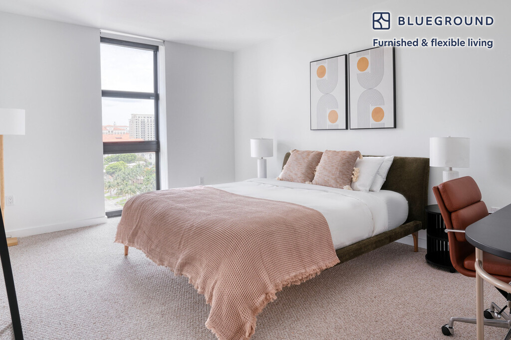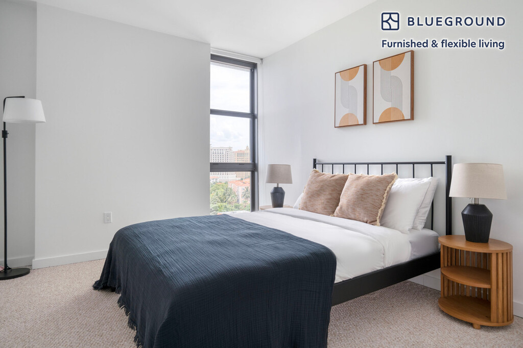 Discover the best of Miami, with this two bedroom apartment in Little Havana with balcony views over the city. It’ll be easy to simply show up and start living in this contemporary furnished apartment with its fully equipped kitchen, comfortable living room, and our dedicated, on-the-ground support. (ID #MIA76) The advertised rate of $3,340/month is the lowest available price, based on a 2 month(s) and 29 day(s) stay with a move-in date of April 26, 2026. If you’re looking for a 1-year stay, the rate is $3,690/month. Rates vary depending on the duration of stay, season, and other parameters. For exact pricing and additional pricing components, please visit our website and enter your desired move-in and move-out dates. The rate is applicable when billed upfront; it can be higher if billed in multiple payments. Brokers are welcome to reach out. Were you looking for an unfurnished lease? Try Blueground instead and upgrade from unfurnished to furnished living: - Furnished at rates comparable to unfurnished - No setup or furniture costs - save thousands - Move-in ready - save time, just bring your suitcase Designed with you in mind As with any Blueground apartment, you’ll find a thoughtfully designed space complete with beautiful furniture and a fully equipped kitchen in this two bedroom property. And, thanks to our superior quality mattresses, luxury linens, and towels, you can relax knowing you’ll always feel comfortably at home. When you’re ready for some fun, you can take in the Miami vibes or bring the entertainment to you with the premium wireless speaker or smart TV. This apartment also offers in-apartment laundry. Sleeping arrangements King Bed, 70.8in/180cm Queen Bed, 63in/160cm Amenities Building amenities unique to this two bedroom apartment include an on-site: - Dryer - Elevator - Swimming pool - Washing machine - Lounge - Parking - Pets allowed Arrival and ongoing support The entire apartment is yours to enjoy! Throughout your stay, you’ll have access to our Client Experience team through the Blueground App. You can schedule additional cleanings, submit maintenance requests, and view our neighborhood recommendations with just a few taps. We’ll share all details upon confirmation of your stay. Ideally Located This furnished apartment is located in Little Havana, a dynamic neighborhood just west of Downtown Miami that’s home to a flourishing Cuban-American and Latino population. Dig into Cuban culture by experiencing the live music, cigar shops, and works of art along Calle Ocho. Craving something to eat or drink? Be sure to grab a cup of Cuban coffee at La Colada Gourmet and a Cuban sandwich at Sanguich de Miami. This area has plenty of entertainment options as well, like the Tower Theater, an Art Deco theater built in the 1920s. To get to Little Havana by public transportation, take the 207 and 208 bus lines. Other things to note Building amenities may have an extra cost. This Blueground apartment has flexible lease options, allowing you to book it for one month, a year, or more. Pets are welcome, though weight limits and breed restrictions apply and may incur fees. Parking is offered based on availability and is subject to a fee. We take great pride in ensuring every photo displayed is shot in our own units with our actual furnishings. That said, we regularly refresh our decor and furniture arrangement, which may differ from what’s pictured. [SI]