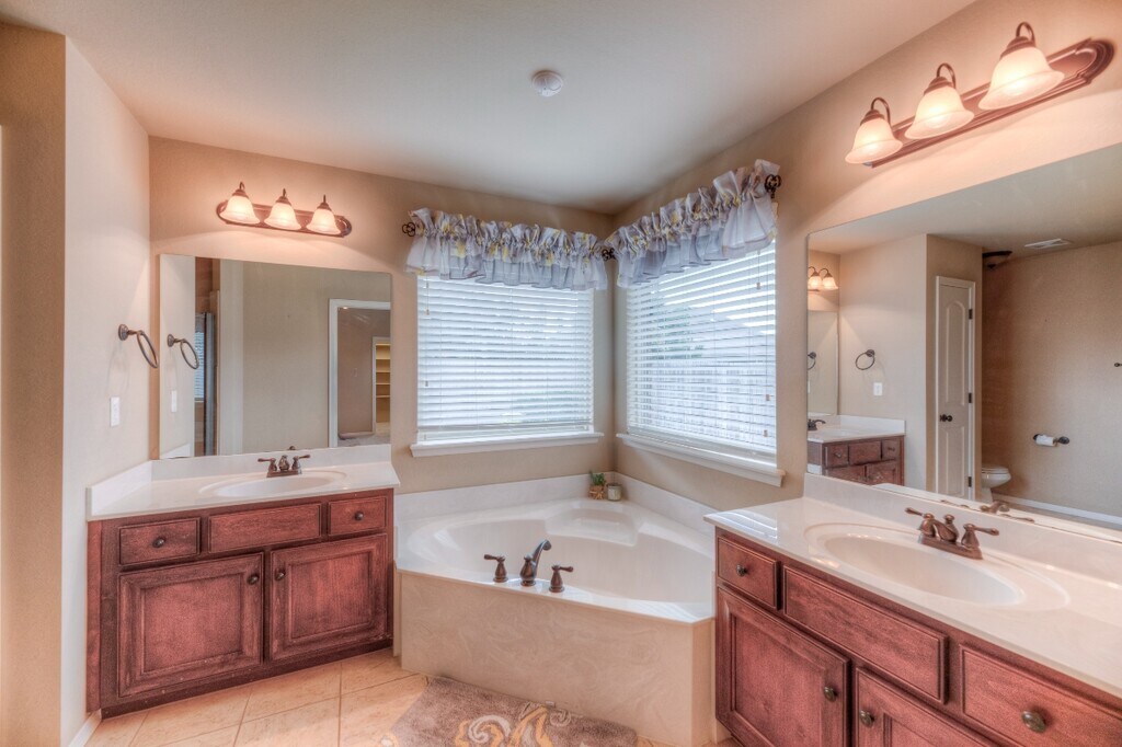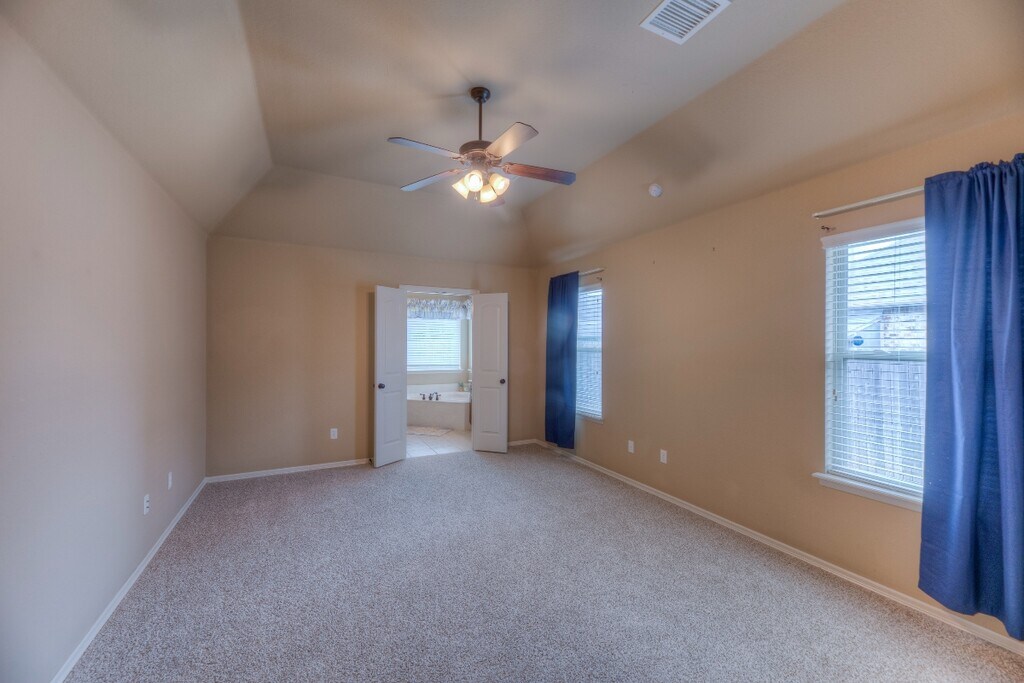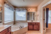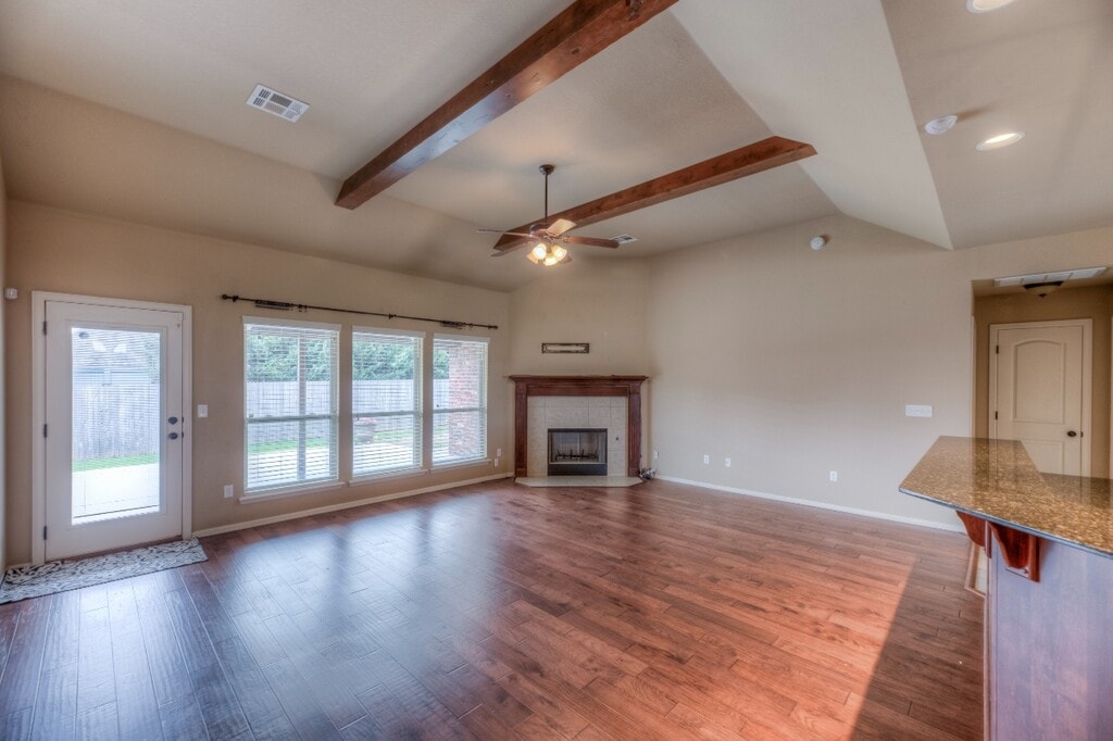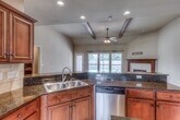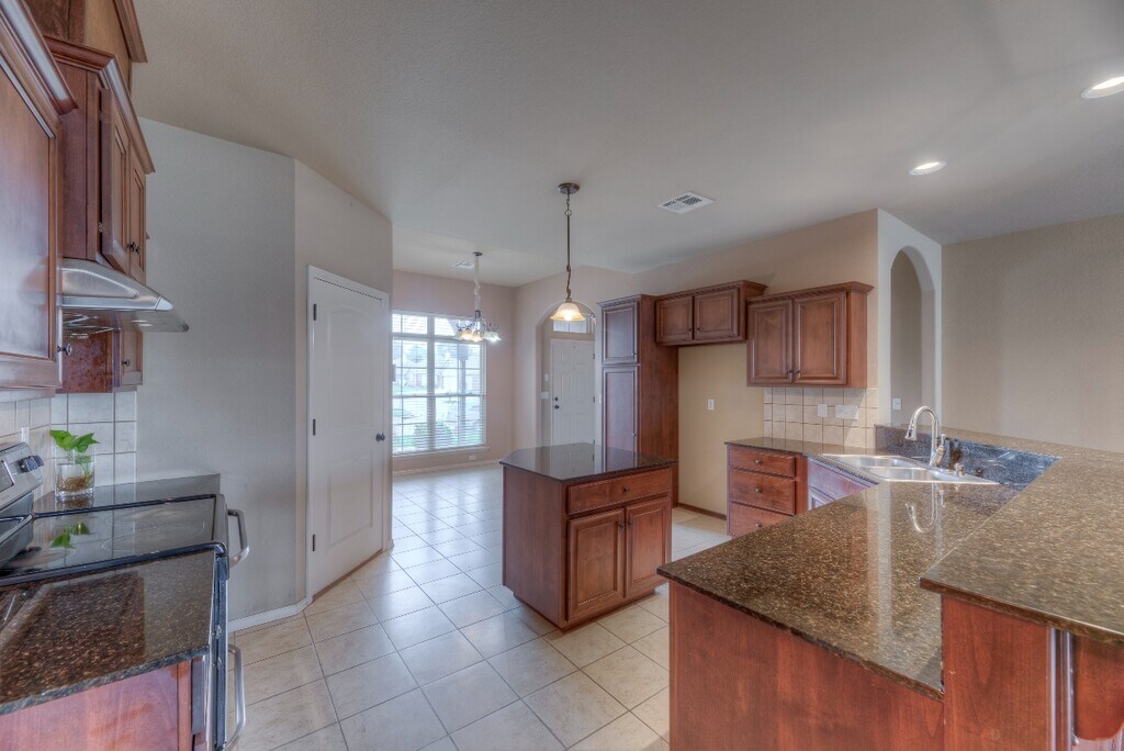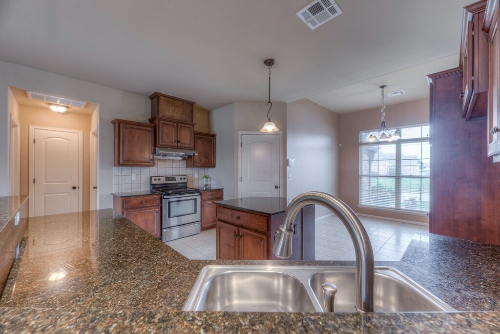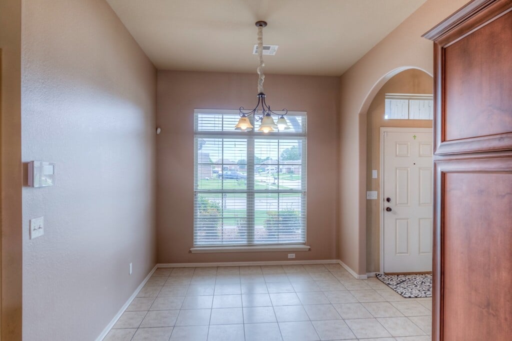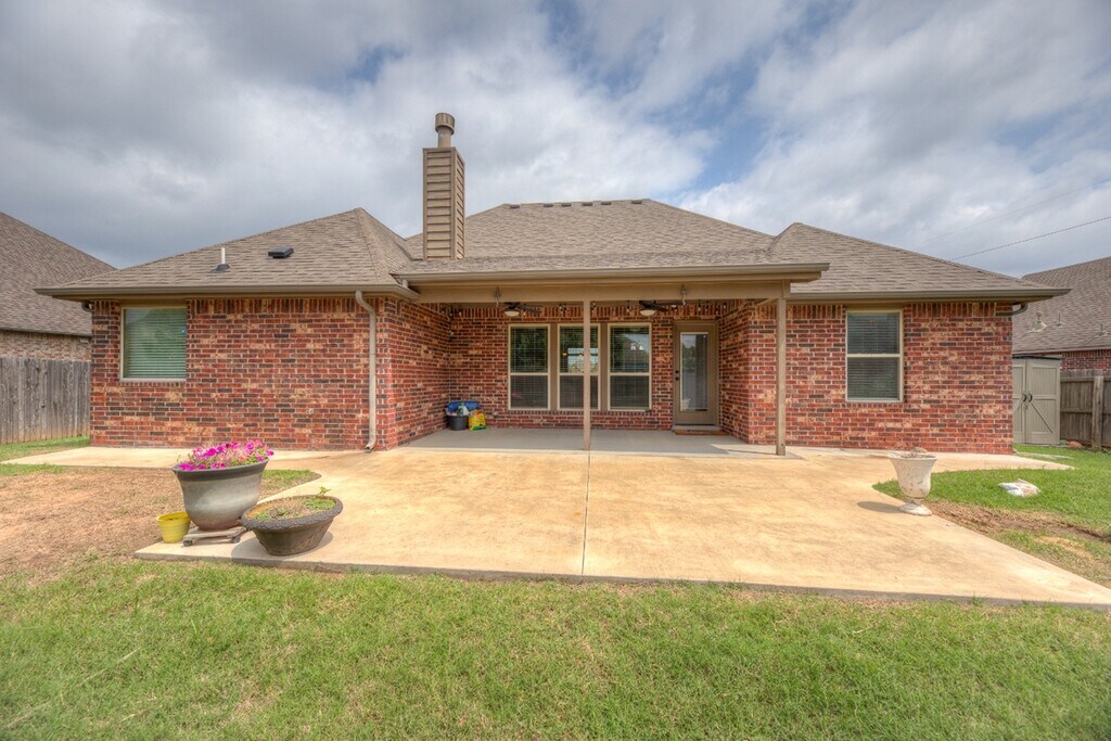 Covered porch adorns this beautifully maintained 3 bedroom PLUS office. Hardwood flooring and granite countertops. Office at entry with french doors and hardwood flooring. Living room with hardwood flooring and gas starter, woodburning fireplace. Kitchen with eating bar, island, and pantry. Primary bedroom with private bath, soaking tub, separate shower, double sinks, and walk-in closet. Inside laundry with washer and dryer provided. Covered back patio overlooks fully fenced yard with equipment shed. Location is amazing - close proximity to Creek turnpike, shopping, walking trails, bowling alley, Warren Theater, Chick-Fil-A, Starbucks, Indian Springs Golf Course and Tennis facility, up and coming Elam Park. Walk to Leisure Park Elem. $250 non refundable pet deposit, $30/mo pet rent. Will consider smallish dog. No cats.