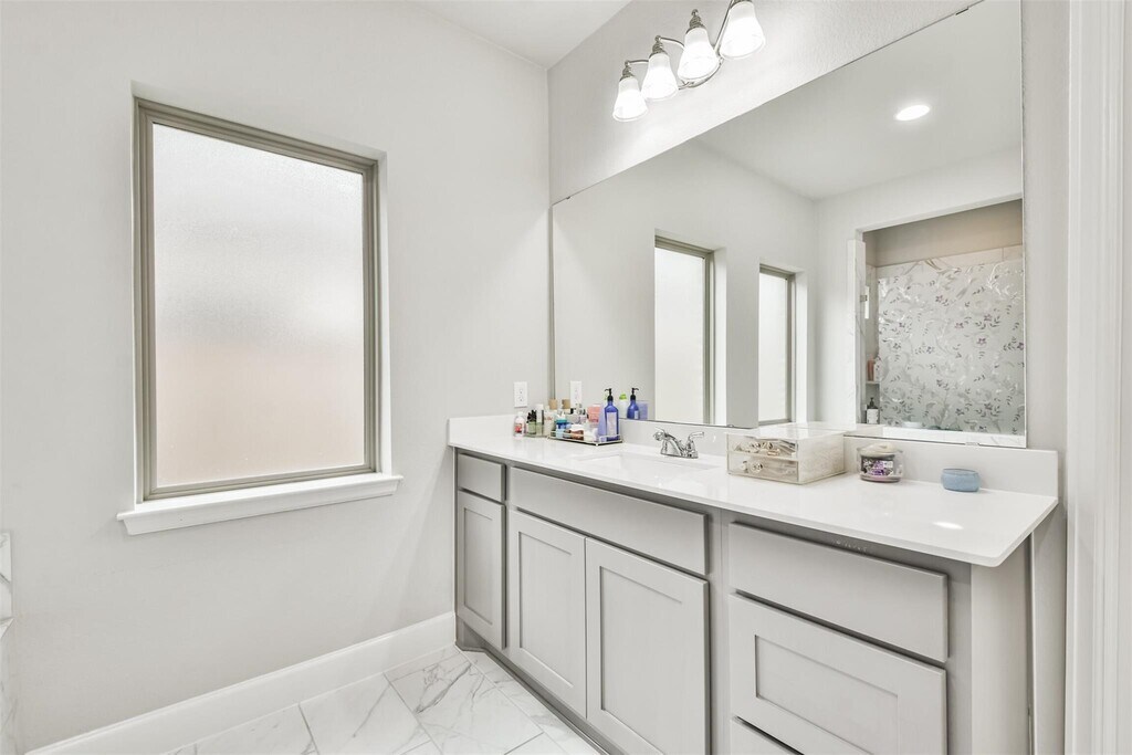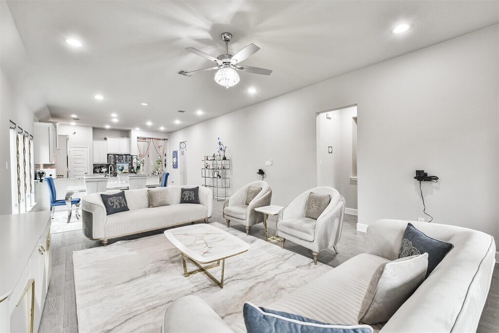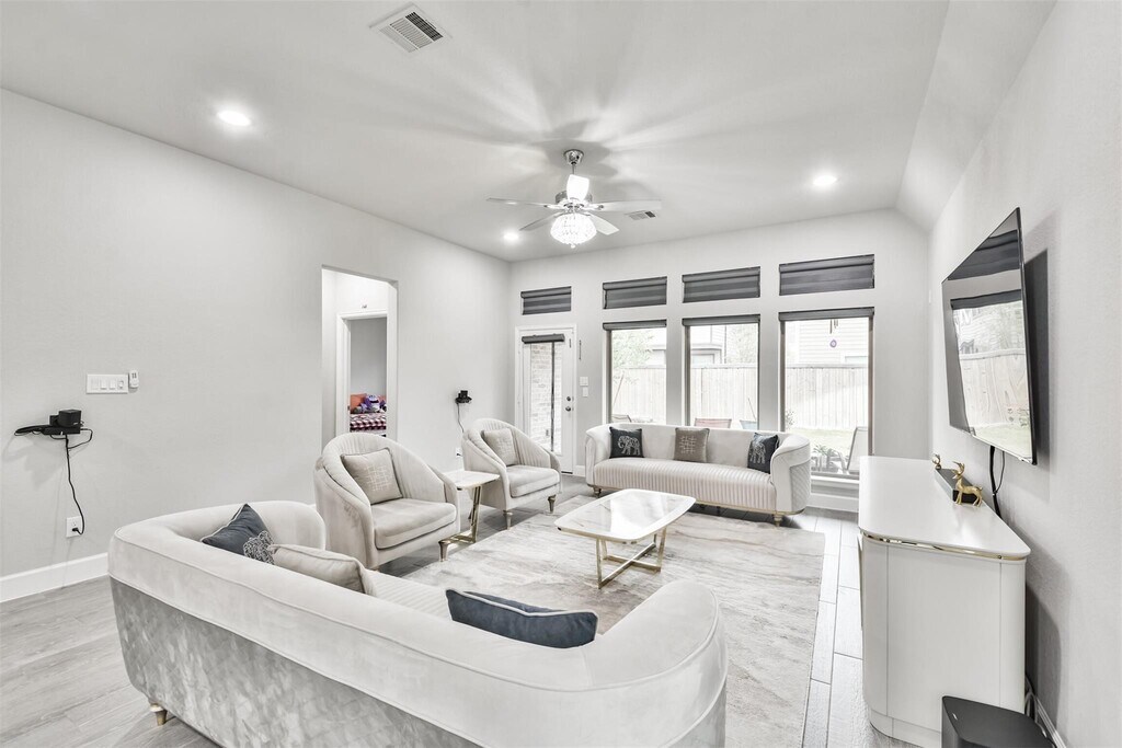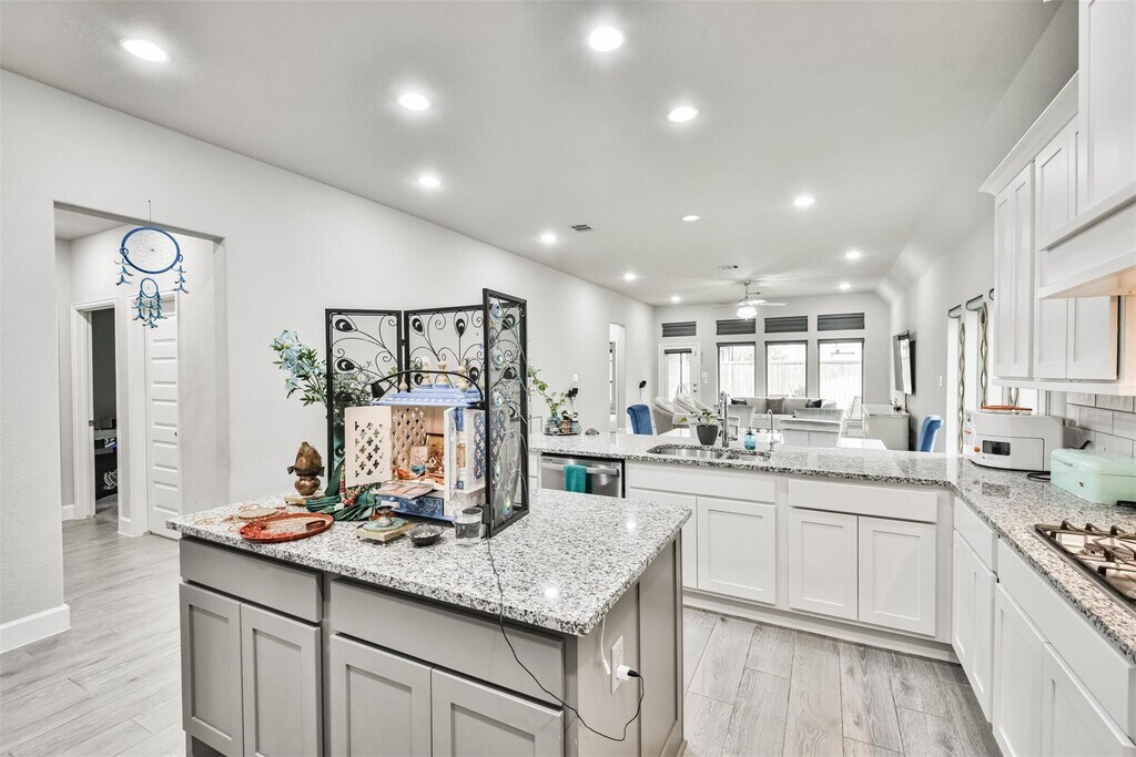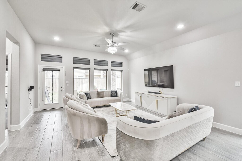 This stunning 1 story,Perry Home,features a spacious and open floor plan with high ceilings throughout. The extended entry welcomes you with 12-foot ceilings,leading into the open kitchen,dining area,and living room. Kitchen includes a center island,providing a convenient space for meal prep or casual dining. Living room is bright and airy with tons of natural light. Custom blinds throughout! Primary suite is a retreat with a 10-foot ceiling and a wall of windows,filling the room with light. The primary bathroom boasts dual vanities,garden tub,separate glass-enclosed shower,and large walk-in closet. Guest suite with a private bath,perfect for accommodating visitors or extended family. Covered backyard patio offers a great space for outdoor entertaining or relaxation. Mudroom off the two-car garage provides a convenient spot to store shoes and coats,helping to keep your home organized and tidy! New water softener! Welcome Home! MLS# 52943369