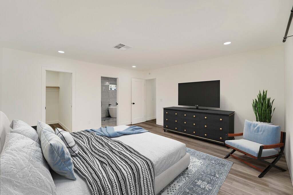 This chic, large midcentury ranch house has been fully remodeled with discriminating tenants in mind. The moment you walk through the front door, high-end design and amenities welcome you. The bright and spacious open concept floor plan is perfect for entertaining. And the spa-inspired en suite wet bath and soaking tub beckon you to luxuriate. Amenities abound. _________________________________________________________________________________________________________________ • Enormous Kitchen with Quartz Countertops Ideal for Cooking and Entertaining • Large Kitchen Island and Peninsula Perfect for Casual Dining, Meal Prep or Hosting • New Stainless Steel Appliances • Counter to Ceiling Tile Kitchen Backsplash • Fireplace with Window Seat • Large Master Bedroom with Walk-In Closet and French Doors • Large Luxurious Master Wet Bath En Suite with Double Sink Vanity • Walk-In Shower and Freestanding Soaking Tub • Stylish Powder Room Off Living Room • Elegant Fixtures and Brass Hardware Detailing • French Doors in Master Bedroom and Kitchen • Separate Laundry Room with Washer and Dryer • Large Front and Back Patios Ideal for Entertaining • Third Bedroom for Potential Home Office _________________________________________________________________________________________________________________ This house is located on a cul-de-sac in a quiet and friendly neighborhood. It sits on an enormous 6,534 square foot lot. Utilities are not included. Applicants are required to complete a rental application and authorize the cost of a credit and background check. Excellent references will be expected. Although furry friends are welcome, a valid veterinarian reference will be required. Call Will at or email .