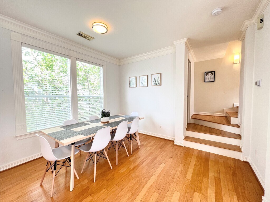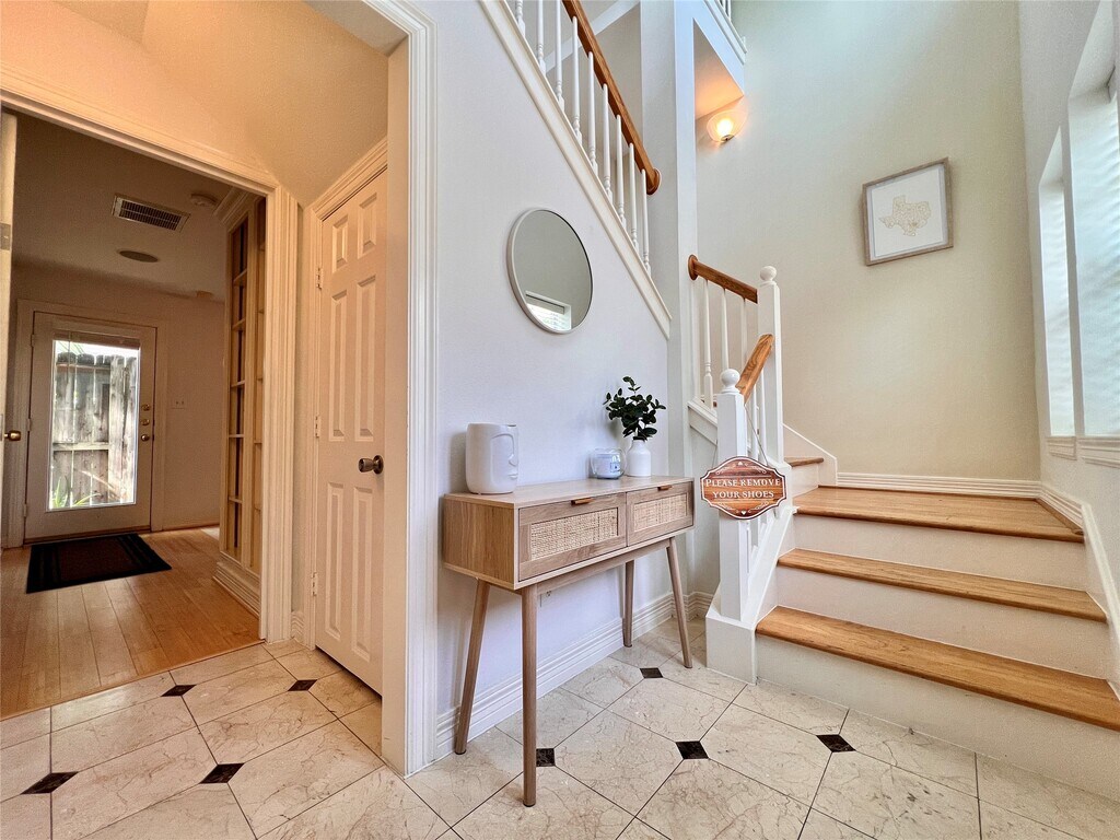 Bright and spacious Perry 3-story corner townhome in a prime location. Features include a fenced yard with a professionally installed stone alley and patio,automatic sprinklers,and abundant natural light throughout. The interior offers extensive hardwood flooring,a marble tile foyer,high ceilings,and an overlooking balcony. The first floor provides a flexible space to fit your needs. The second floor features an open-concept living,kitchen,and dining area,along with a remodeled kitchen with black granite countertops and a guest half bath. On the third floor,the primary suite offers high ceilings,a large walk-in closet,and an executive bath with an updated shower. A secondary bedroom with a private bath and large window is also located on this level. Recent updates include AC (2024),cooktop (2023),water heater (2022),and roof (2021). Refrigerator,washer,and dryer are included. Photos were taken when staged. Furniture and decor not included. MLS# 56898906