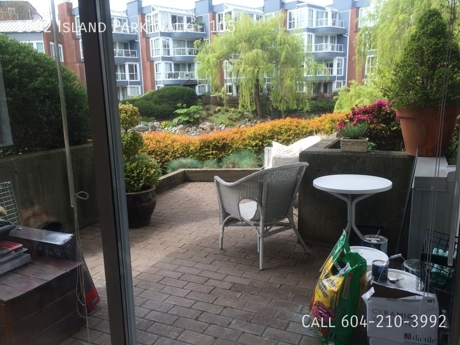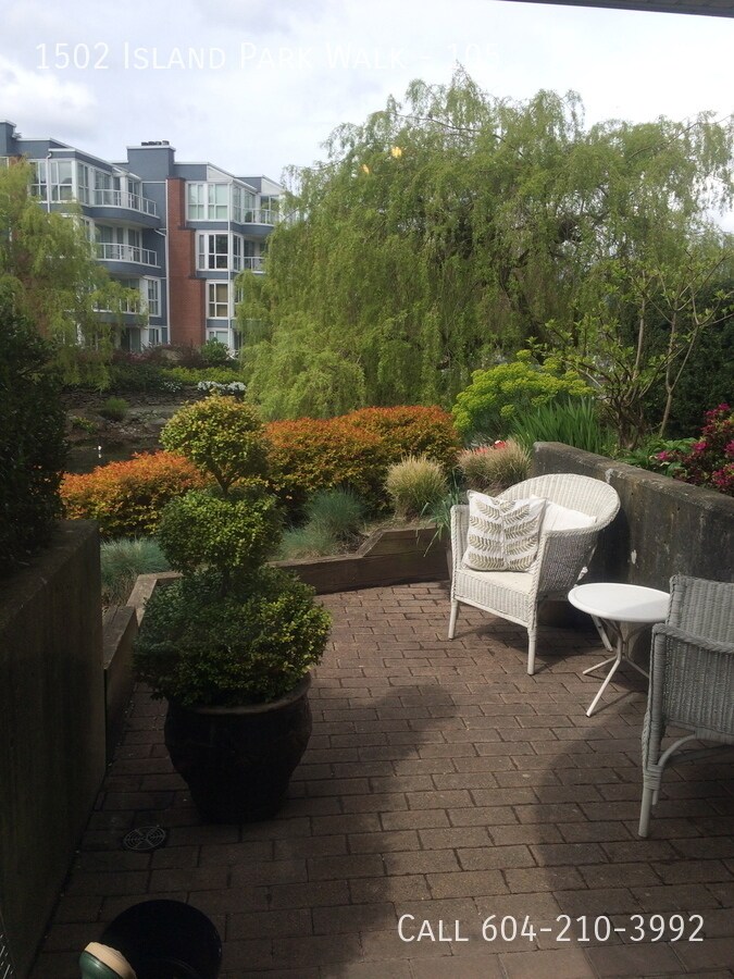 One Year Lease Required Security Deposit: Half Month's Rent PRE-APPROVAL REQUIRED Enjoy upscale living in this beautifully furnished 1 bedroom, 1 bathroom suite located on the first floor of a quiet, well-maintained building in one of the area’s most desirable neighborhoods. Unit has a private a patio that faces the lagoon. Only a 5-minute walk to Granville Island. Please call Ace Property Management at - Ext-1 to book a viewing. Reference the address: "#105-1502 Island Park Walk"