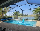 Catch the amazing water view sunsets and relax on a beautiful pool deck and lanai overlooking Coral Oaks golf course in desirable NW Cape Coral. The heated pool has a private bath,outdoor kitchen with BBQ,outdoor dining,and two separate furnished hang out areas. The spacious home has a huge kitchen with island,coffee bar and separate indoor dining with the pool and water view. The family room features large pocketing sliding doors across the back of the house. The large primary bedroom also has pocket doors that open to the pool deck with an ensuite bathroom with dual sinks/vanities,walk in shower,and a make-up table. Additionally it has two separate guest rooms,a guest bath,and a private workspace. The neighborhood is family friendly with lots of places to walk and bike. Matlacha and Pine Island Road are close by with a short drive to restaurants,bars,and shops and is only 20 minutes to downtown Punta Gorda. Rent discounts available for multi-month short term rental in offseason (May-October).