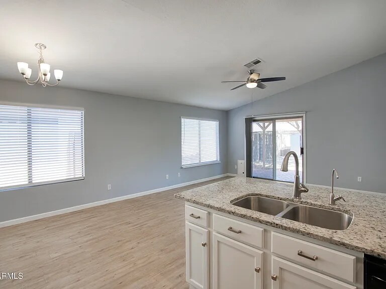 Enjoy the amazing community facilities with 3 Community POOLS while living in a newly remodeled house. This updated 3-bedroom, 2-bath home offers a spacious open-concept layout, granite kitchen countertops, freshly sanded and repainted kitchen cabinets, new carpet throughout, and ceiling fans. Brand-new windows! All appliances will stay. New exterior paint and low-maintenance turf in the backyard ideal for relaxing or entertaining. Walking distance to the heated community pool and playground, this home combines comfort, style, and convenience in one fantastic package! Prefer a year lease but negotiable. The renter is responsible for all utility fees and maintaining front and backyard.