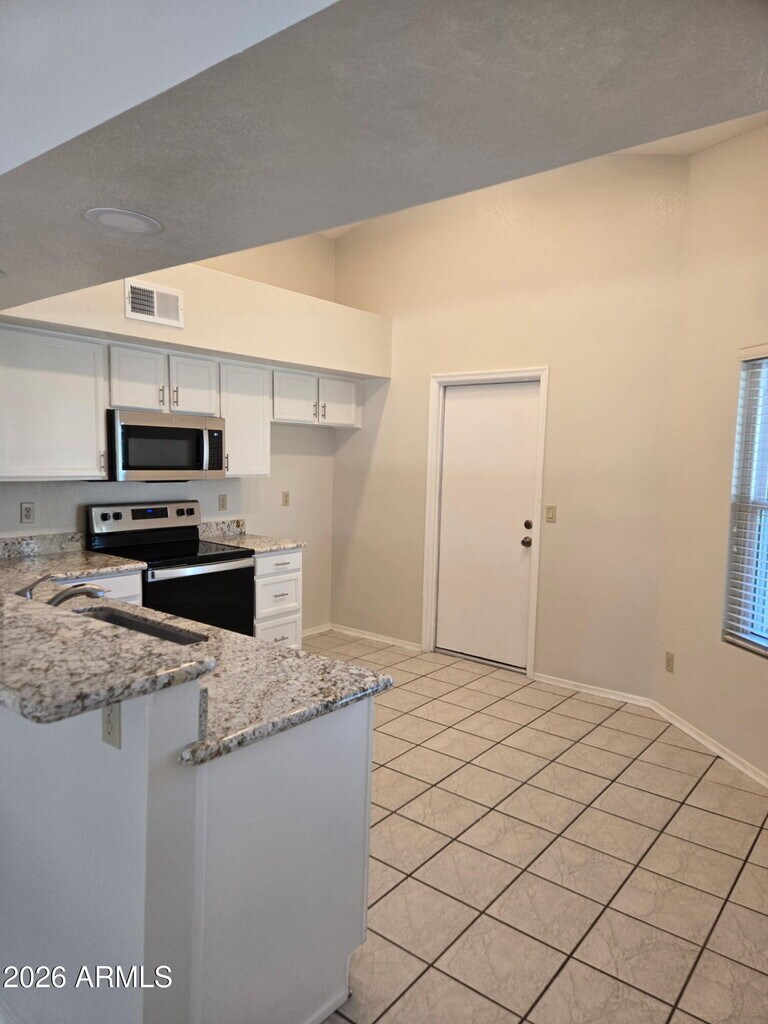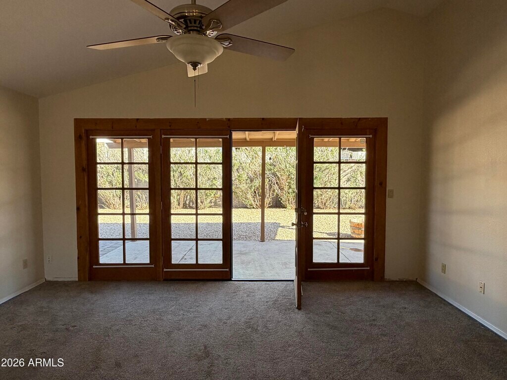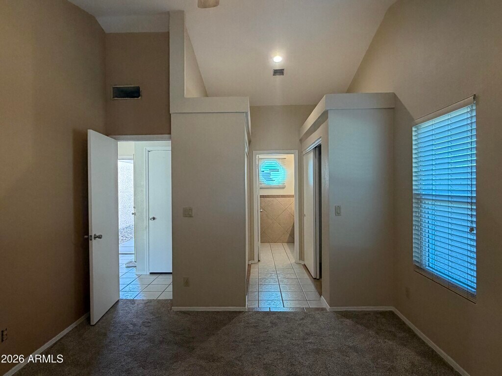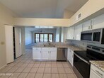 Beautiful updated 3 Bedroom home with fresh paint and gorgeous kitchen,ready for YOU! Convenient split floorplan features 2 bedrooms with valued ceilings on one side,and spacious primary suite on the other. Great Room at the heart of the home includes plush carpeting and new slider doors on the way. Eat-in Kitchen w/pantry,microwave & breakfast bar,stylish new granite counters and white cabinets,Single tub sink,and updated lighting. Tile in all the right places with new carpet in the bedrooms. Interior and Exterior - freshly painted. Landscaping updated with new side gate. Covered Patio Extended with Pavers. All Desert Landscaping with care free faux turf in front yard. No pets please.