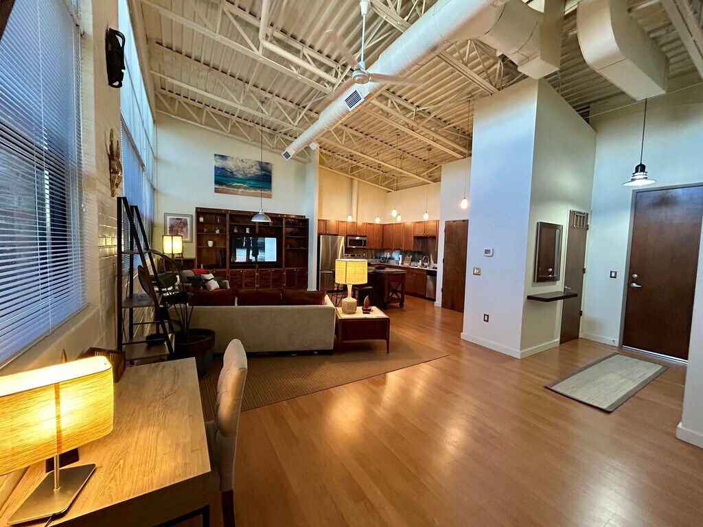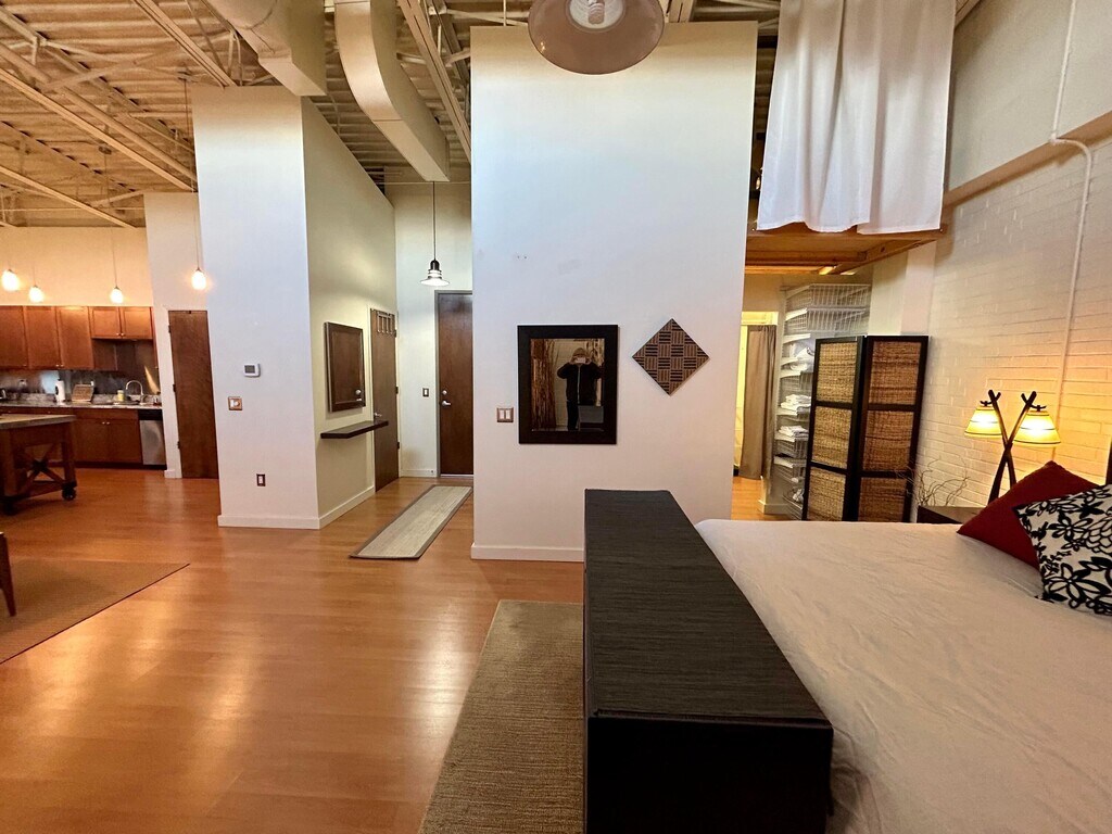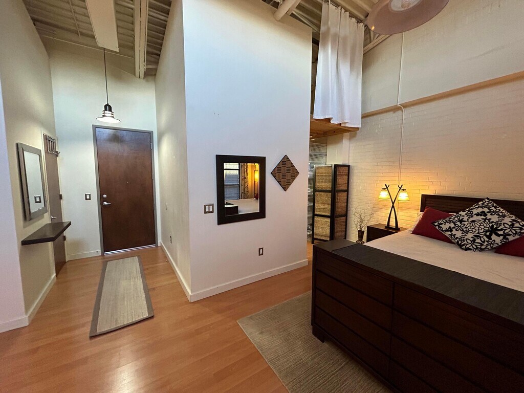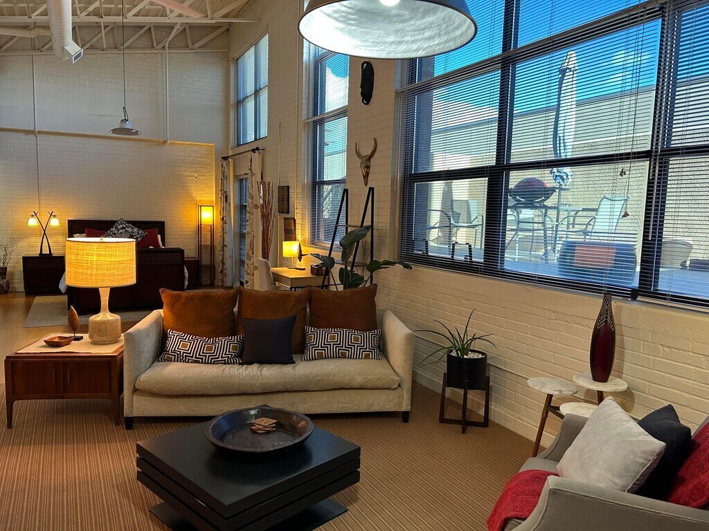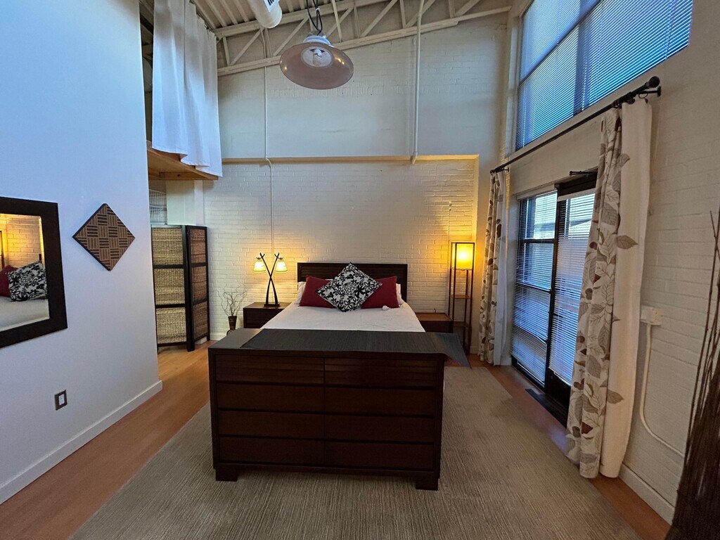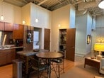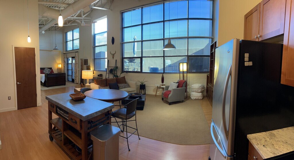 FABULOUS Condo loft with towering ceiling and wall of windows just 5 blocks from Old Town Center and the prestigious downtown Country Club residential neighborhood (great for walking!) This 950 sq ft unit is perfect for a Corporate/MOVIE crew member,travel nurse,or a local who wants to be in the heartbeat of ABQ. Open concept kitchen with granite counters,electric stove,dishwasher,microwave,small appliances,in-unit washer/dryer and pantry. Walk in closet with extra storage next to full bath. The unit is fully furnished (current furniture may differ from photos) with comfy linens,Smart TV,in Unit Washer/Dryer,and private,gated parking. Garbage and recycling center are located within the gated parking area with assigned parking space included. The min rental term is 6 mos.