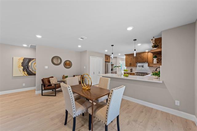 In the heart of Beckley Club Estates—Cedar Oaks neighborhood of Oak Cliff, discover this beautifully renovated home. Flooded with natural light and brimming with charm, its open layout creates an inviting atmosphere. Gutted down to the studs, this home features updates to the roof, HVAC, plumbing, electrical, foundation, kitchen, bathrooms, and patio. Charming 4-bedroom, 3.5-bathroom, 2-car garage, 1.5-story home with picture-perfect curb appeal on a corner lot adorned with mature trees and double front porches. The large living area showcases wood beams on the ceiling and a fireplace, with oversized windows that let in ample natural light. The heart of the home is a custom chef’s kitchen, designed for serious cooking and entertaining. It features Cosmo luxury appliances, custom cabinetry, oversized counter and bar area. The second level offers a versatile 4th bedroom option complete with its own full bathroom and a private entrance, adding flexibility for guests or an in-law suite. Step out to the patio that leads to a pleasant back yard with steps that extend downward to a spacious expanded rear yard suitable for outdoor activities. Don’t miss the opportunity to own a home that truly has it all—thoughtful updates and an unbeatable location where peacocks roam.