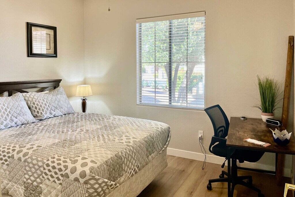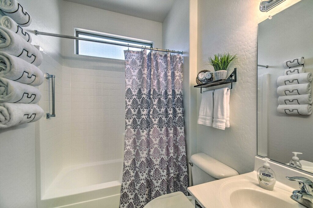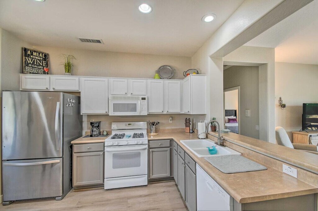 The advertised rate of $3,369/month is the lowest available price, based on a 30 day(s) stay with a move-in date of August 29, 2026. Rates vary depending on the duration of stay, season, and other parameters. For exact pricing and additional pricing components, please visit our website and enter your desired move-in and move-out dates. The rate is applicable when billed upfront; it can be higher if billed in multiple payments. Clear the calendar for the perfect adults-only getaway in this spacious Surprise vacation rental. Feel at home in this 3-bedroom, 2-bathroom home conveniently located in an amenity-filled community. This home comes equipped with a renovated interior, a full kitchen, and a private patio. The fully equipped kitchen includes a dishwasher, microwave, coffee maker, blender, toaster, cooking basics, knife set, dishware and flatware, and spices. You'll also find cable and smart TVs, board games, a freshly painted interior, a gas grill, a covered furnished patio, an outdoor dining area, a washer and dryer, free Wi-Fi, central air conditioning, electric heating, hangers, trash bags, and paper towels. Community membership cards are available for an additional fee which can be paid on-site (1-3 months for $200/card; 4-6 months for $300/card; and 7-12 months for $500/card). These cards allow you to access the Sun City Grand Community facilities and amenities for guests staying at the property long-term. Pets are welcome with a $100 fee. When you’re not relaxing at the property, try out one of the four community golf courses, the fitness center, or explore unique attractions nearby like the Wildlife World Zoo, Aquarium & Safari Park. This property is located in an adults-only community, and guests must be at least 45 years old to book. No events, parties, or large gatherings are allowed. Guests will have access to the entire property via keyless entry. Enjoy access to two community pools, four golf courses, and a fitness center. Parking is available in the driveway (2 vehicles), garage (2 vehicles), and free street parking. [SI]