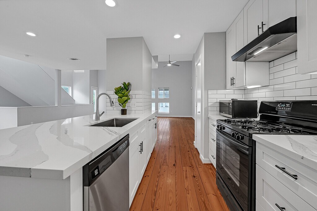 Stylish & modern corner unit townhome nestled in the heart of Mid-Town & minutes from Downtown,Medical Center,Montrose now available to call home! Gorgeous city views from the two balconies/ patios,grand ceilings throughout which bath the home in natural light,renovated kitchen equipped with quartz countertops,gas range,commercial grade hood vent,farmhouse sink & soft close drawers and cabinets! Other amazing upgrades include a new roof,newly installed remote controlled ceiling fans,LED energy efficient lighting,new air conditioning condenser,new carpet on third floor & master,newly installed blinds,new paint throughout and more! Other fantastic amenities include all appliances included (washer,dryer and refrigerator),attached two- car garage and spacious backyard with endless possibilities. This must-see home is city living at its finest! call today to set up your showing! MLS# 58492031