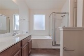 Great single story home ready for new tenants! Fresh full interior paint including the doors and trim. The owners will be installing new laminate wood flooring throughout the home. Nice open floor plan with a large kitchen that offers a breakfast bar & tile backsplash. Good sized living room with vaulted ceilings provide great space for entertainment system & living room furniture. Large laundry room & pantry off of kitchen. Spacious primary bedroom with views of the backyard, high ceilings, large ensuite bathroom, separate tub & shower, dual sinks and a walk in closet. Two nice sized secondary bedrooms with a shared bathroom. Shady covered backyard patio & charming covered front porch. Large backyard has a nice storage shed as well. Community Amenities include a neighborhood pool, playground and a dog park! Great Pflugerville location near major employers like Samsung, Dell Computers, TechRidge and great shopping around the corner!