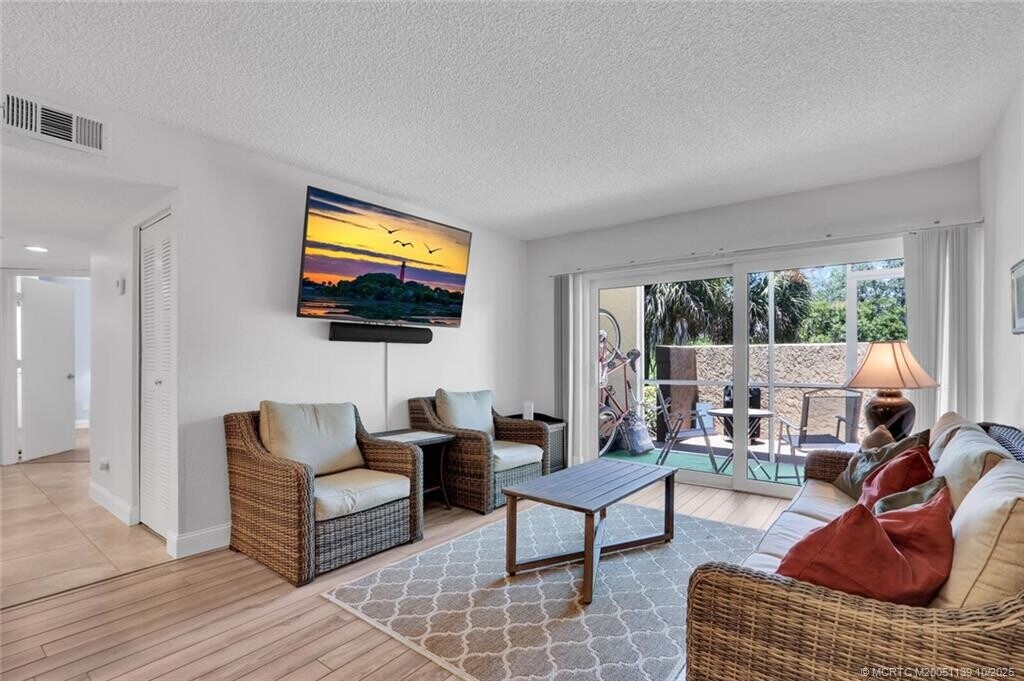 Beautifull? furni?h?d and u?dated 2 bedr??m,2 b?th ground floor condo in ?id?ort Place I. Relax on the screened lanai overlooking a peaceful pond and park with direct access to walking,jogging,and biking trails. Just steps to the community pool and clubhouse. Prime location east of US1,close to shopping,dining,the hospital,Civic Center,and less than 10 miles to the beach. This move in ready home offers a newer AC,reserved parking,and comes fully furnished and equipped for easy annual living. Available now. MLS# M20051139