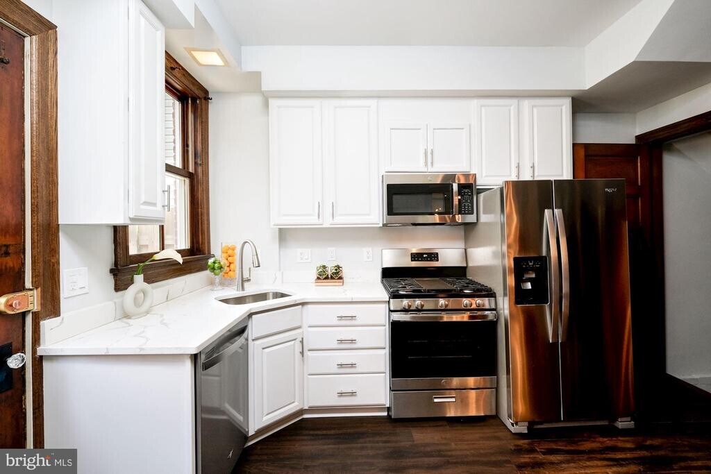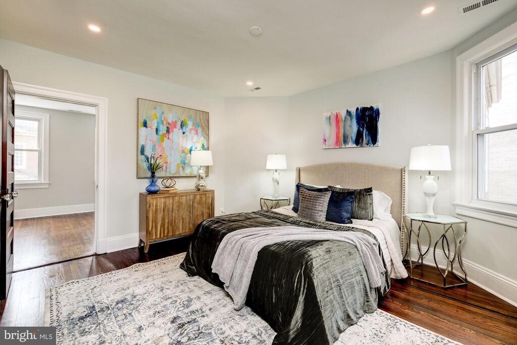 Nestled mid-block on a charming tree-lined street, this spacious, 3-level, fully renovated 4BR/2.5BA residence with 2,914 square feet of living space has a functional traditional floor plan perfect for relaxing and entertaining. Originally constructed at the turn of the 20th century, this end-unit row home maintains a wonderful balance of modern conveniences with its updated designer’s kitchen and bathrooms, while preserving historic charm with rich hardwood floors, moldings and pocket doors throughout. The main floor boasts a large living and dining area, a kitchen with stainless steel appliances, quartz counters, recessed lighting and an abundance of fine cabinetry and the convenience of a half-bath. Upstairs has three light-filled bedrooms, one with a balcony and a full bathroom and washer/dryer. The lower level is fully finished with a bedroom, living room, compete 2nd kitchen, laundry and full bath with walk-in glass shower. The outdoor amenities include a full-length front porch, small deck off the kitchen and rear private patio space. The attached garage and driveway can accommodate up to two vehicles, as well as provide storage options and is available to rent for an additional $250 a month. This residence’s location adjunct to the 16th Street corridor offers convenient access to the Columbia Heights Metro station and a wonderful array of parks, restaurants, grocery stores and shops, all within the backdrop of the stately ethics from the many historic structures in the neighborhood.