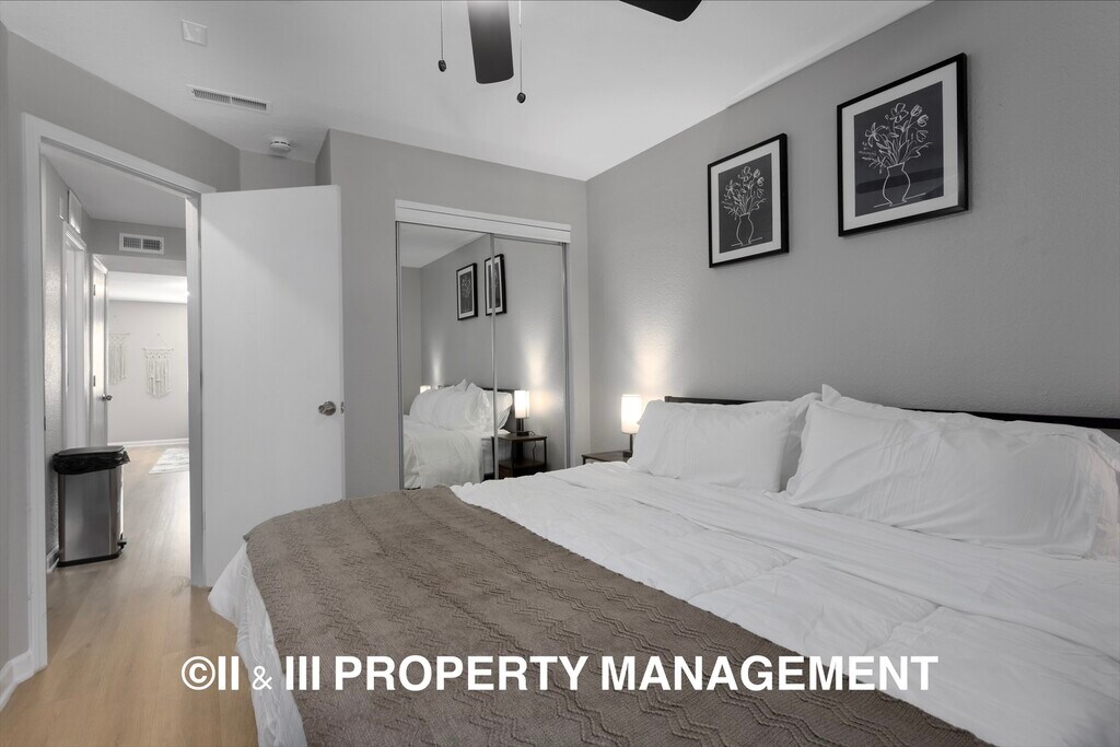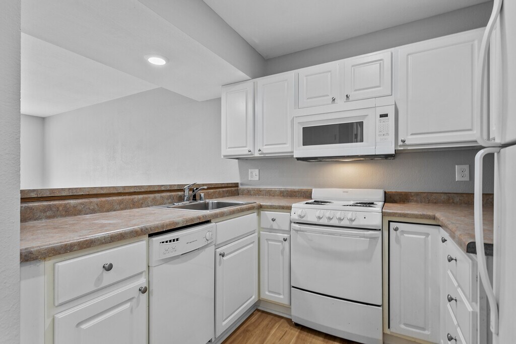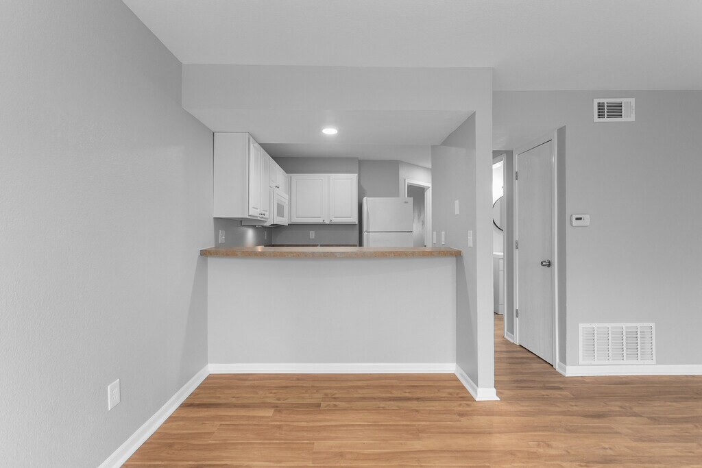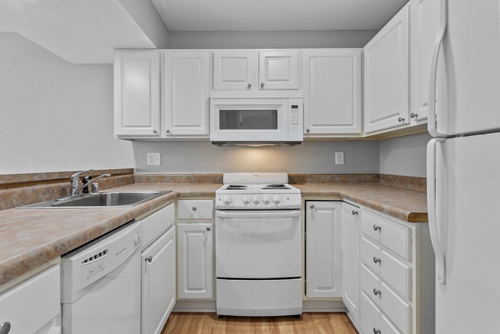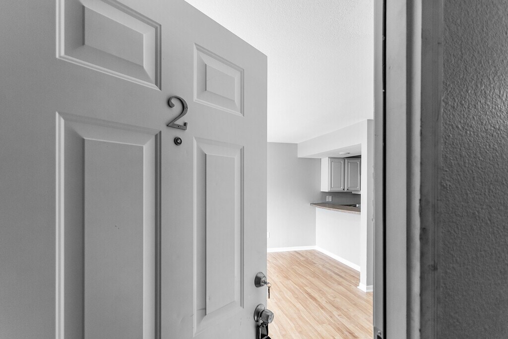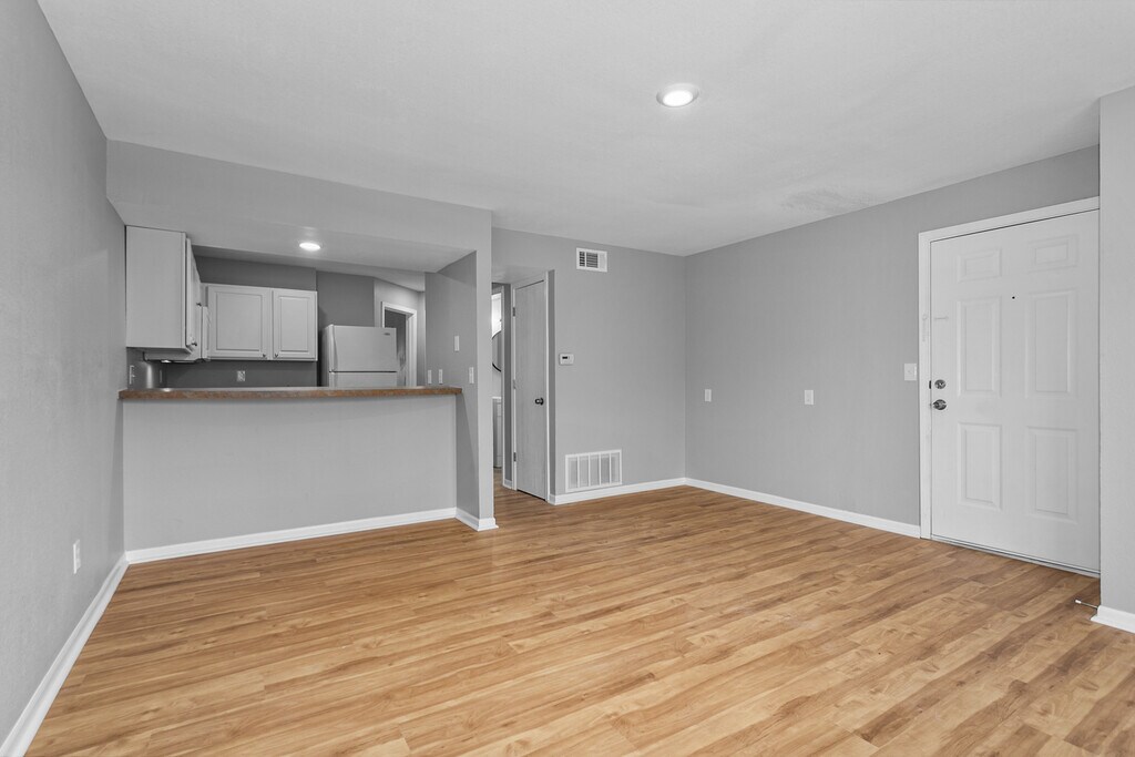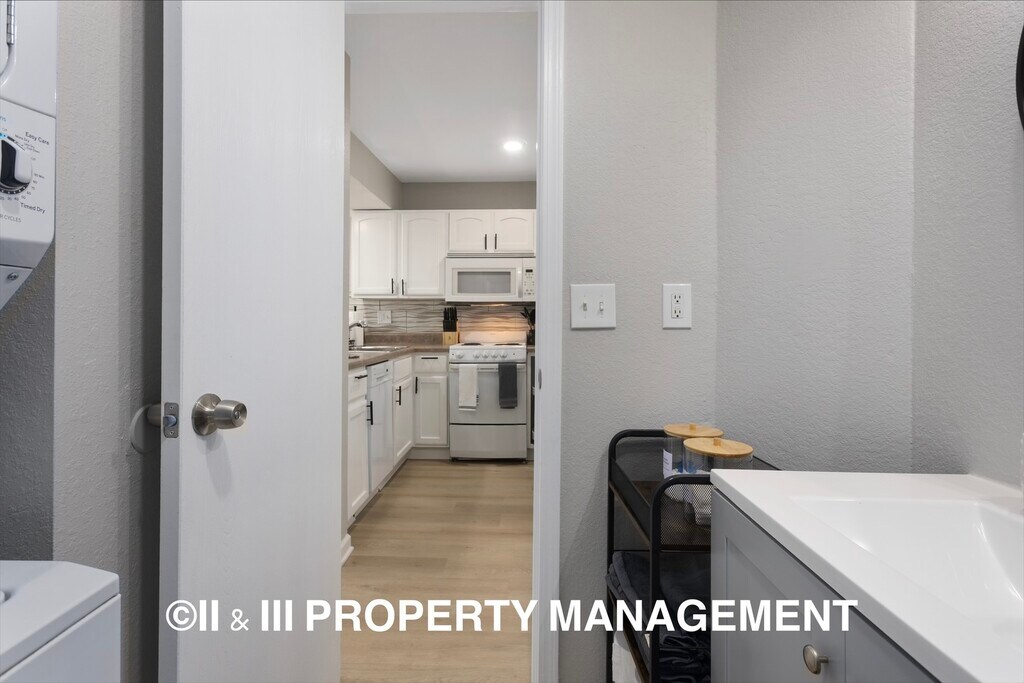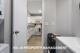 FULLY FURNISHED MEDIUM TERM APARTMENT NEAR KU! Updated apartment with a clean modern look. Open concept living room that looks into the kitchen. Tiled bathroom with new vanity, toilet, tub and surround. Both bedroom have access to outdoor space that is hidden behind privacy fences. In unit washer and dryer included. Brand new walking path behind the complex.