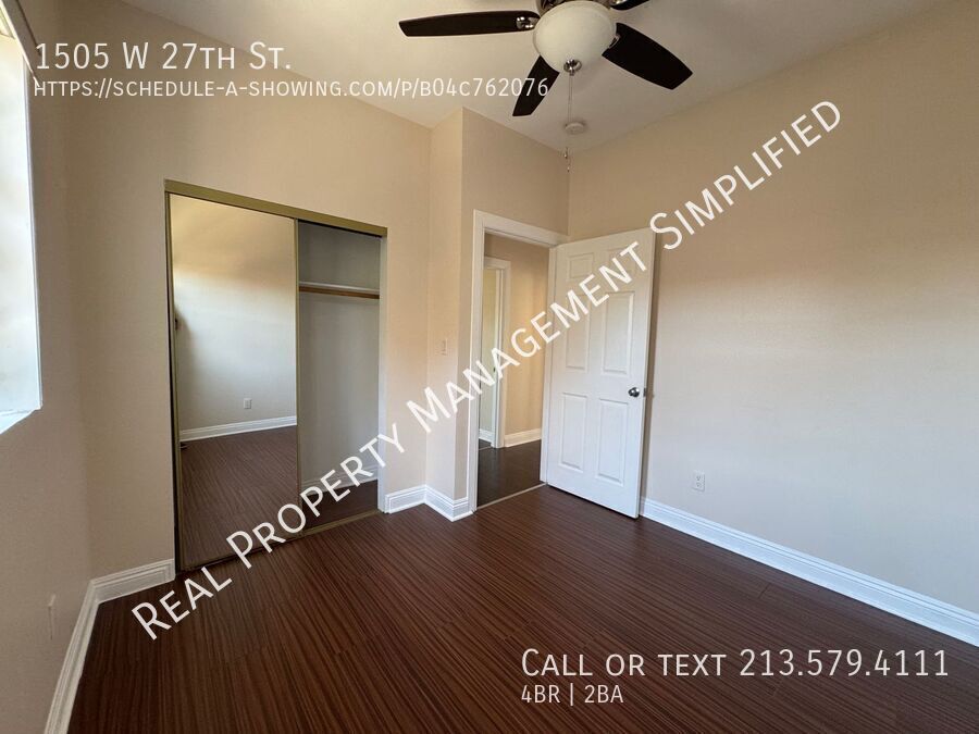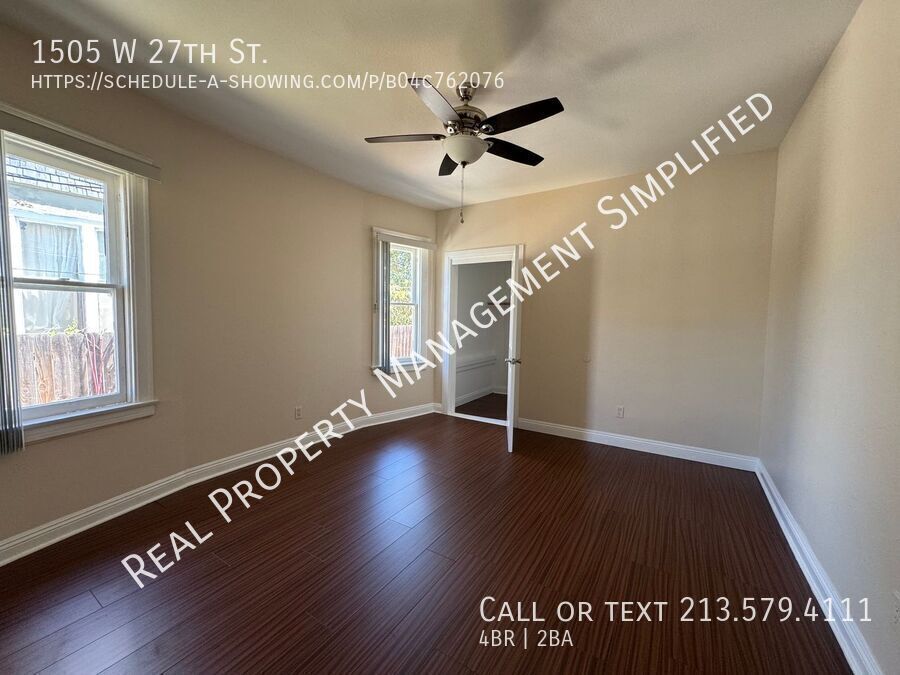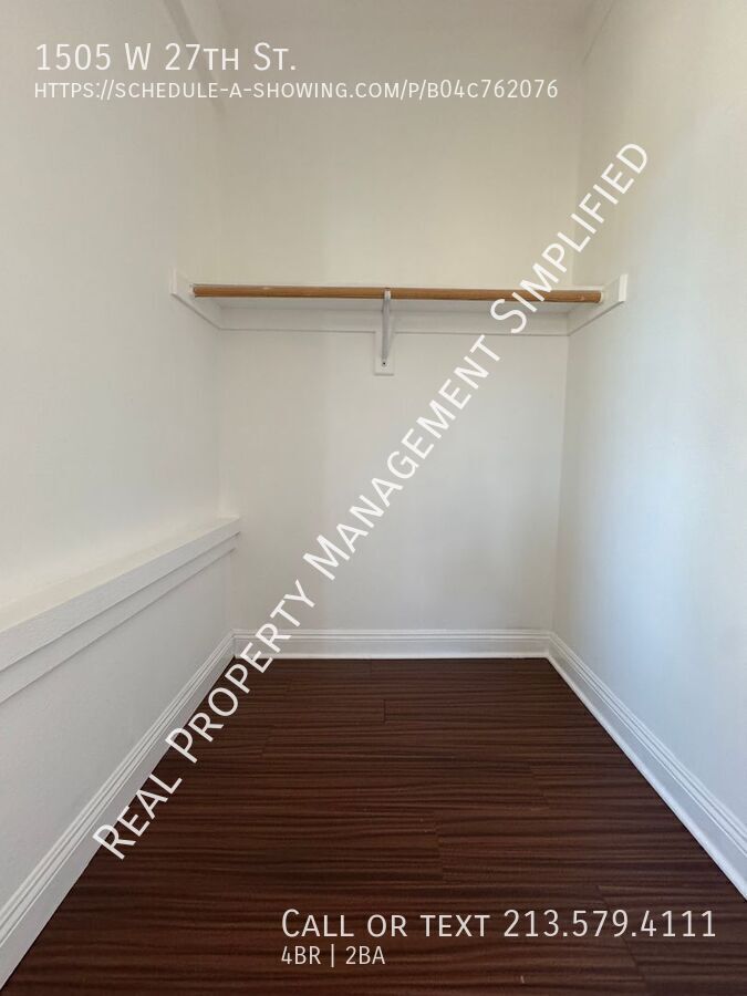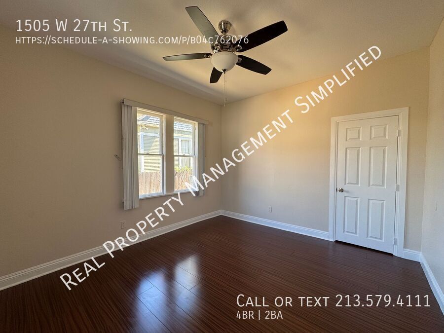 Welcome to this charming standalone 4-bedroom, 2-bath home located just minutes from the University of Southern California. This gated property offers comfort, convenience, and plenty of space both inside and out. Interior Features Hardwood floors throughout the home Mini-split air conditioning in the living room Each bedroom includes a closet, with one featuring a walk-in closet Bright, functional layout designed for comfortable living Exterior & Community Amenities Long driveway with 3 parking spaces Large front yard with grass, perfect for BBQs or outdoor relaxation Shared exterior laundry room for resident convenience Secure gated entry for added peace of mind Pet Policy Pets are welcome! $500 one-time Pet Fee per pet plus $50/month Pet Rent. All pet approvals and screening are managed through Neighborhood Highlights Exposition Park: Home to the Natural History Museum, California Science Center, California African American Museum, BMO Stadium, and the Los Angeles Memorial Coliseum. USC Campus: Access to cultural tours, athletic facilities, and academic attractions. USC Village: A vibrant hub with Trader Joe’s, cafés, dining, shopping, and essential services. Transit Access: Jefferson/USC Metro E Line station and multiple bus routes for easy commuting. Dining & Nightlife: A wide selection of restaurants, from casual eateries to upscale dining experiences. Outdoor Enjoyment: The Rose Garden at Exposition Park is perfect for picnics, walks, and relaxation. This property is ideal for students, professionals, or anyone looking to enjoy the best of USC living with the privacy of a standalone home. All Real Property Management Simplified residents are enrolled in the Resident Benefits Package (RBP) for $49.99/month which includes liability insurance, credit building to help boost the resident’s credit score with timely rent payments, up to $1M Identity Theft Protection, HVAC air filter delivery (for applicable properties), move-in concierge service making utility connection and home service setup a breeze during your move-in, our best-in-class resident rewards program, and much more! More details upon application. Exterior Community Laundry Area Gated Parking Mini Split Ac System Private Master Bathroom Water