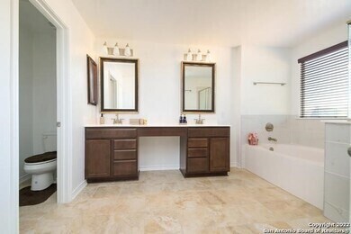 Welcome Home to Hidden Bluffs! This is one of KB Home's most spacious floor plans,offering 5 bedrooms and 3.5 bathrooms. One bedroom downstairs with bathroom. The open design floor plan includes vaulted 9ft ceilings. A modern Kitchen featuring Kitchen flat panel cabinetry,Quartz countertop with ceramic tile backsplash,high quality Frigidaire appliances and Kitchen island. Water Softener Water Filter included. Relaxing bathrooms: with double sinks,separate tub and shower in the Master Bath,ceramic tile surround with tub in Secondary Baths and Quartz countertop. Energy efficiency features: SEER carrier AC system with programmable thermostat,gas water heater. Huge Fenced in Backyard,Rear covered Deck,Washer,Dryer. If you are looking for a great community with walking trails,easy access to majors freeways 90-W,281,in one of the best school districts,this is it! Minute from Christus Santa Rosa,SeaWorld,Six Flags. MLS# 61258449