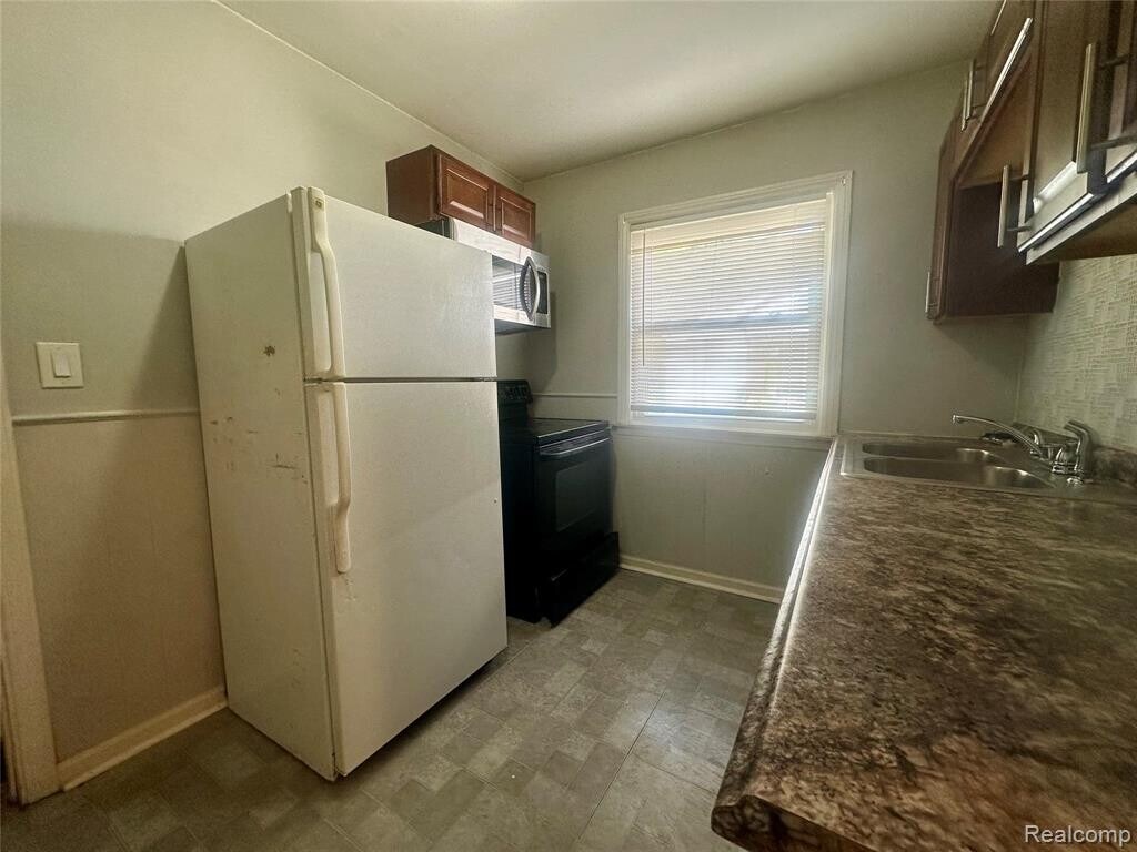 Welcome to this brick half duplex on Evergreen Road in Detroit. Featuring two bedrooms and one full bathroom, this home offers hardwood floors, neutral paint colors, and plenty of natural light throughout. The living room and bedrooms provide a comfortable layout, while the kitchen includes updated cabinets, generous counter space, and a double sink. The full bath features a tub and shower combination along with a functional vanity. The basement provides additional space with laundry hookups, a utility sink, and room for storage or flex use. Outside, you will find a private driveway, fenced yard, and classic curb appeal. Conveniently located near schools, shopping, and major freeways, this property is a great investment opportunity or a perfect home to live in. BATVAI.