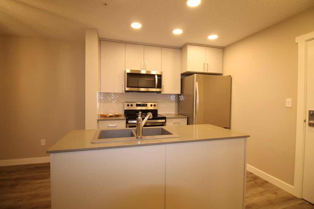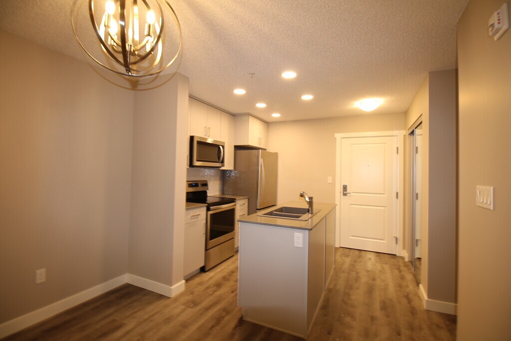 - Additional Property Details- Welcome to this delightful 1-bedroom condo in Tamarack, a perfect fit for singles, seniors, or semi-professionals. The open-concept floor plan creates a sense of spaciousness, with a well-appointed kitchen that boasts ample cabinetry, a large island, quartz countertops, and matching stainless steel appliances. The inviting living room opens onto a private balcony, offering a perfect spot to relax or entertain. The large bedroom features a walk-in closet, providing plenty of storage space. The full bathroom and in-suite laundry add convenience, making this condo a complete package for comfortable living. The building offers an array of amenities designed for ease and security, including a comprehensive security system, two elevators, and visitor parking for your guests. You can enjoy a rooftop patio with great views, a community garden for those with a green thumb, a cozy sitting area, and even a dog park for pet owners. The deck is fitted with aluminum and glass inset railings, enhancing the modern aesthetic. Location is key, and this condo doesn't disappoint. It is just steps away from various shops, grocery stores, banks, schools, and public transit, providing all the essentials within easy reach. For recreation, the local rec center is nearby, and there's convenient access to both Anthony Henday and Whitemud Freeway, making commuting a breeze. Rent includes heat, water, and parking, offering excellent value for this beautifully maintained condo. Don't miss out on this opportunity—schedule a viewing today! Tamarack, near shops, schools, transit, and major roads (Anthony Henday & Whitemud) 1 bedroom with walk-in closet, full bath, in-suite laundry, and open layout Large island, quartz countertops, stainless steel appliances, ample cabinets Spacious living room with access to private balcony Security, 2 elevators, visitor parking, rooftop patio, garden, dog park, and sitting area Deck with glass/aluminum railings Heat, water, and parking included in rent - 106 - 1506 Tamarack Blvd NW- $1,3501 Bed, 1 Bath, 560 sq ftAvailable Now- Availability Details- Price - Availability Date - Unit - Sq Ft - Deposit - $1,350 - Available Now - 106 - 1506 Tamarack Blvd NW - 560 sq ft - $1,350 - Model Rent and Fees- Model Price- $1,350