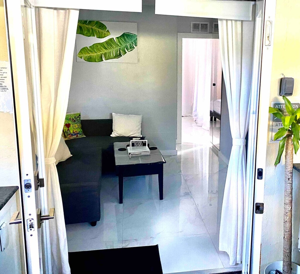 The advertised rate of $2,056/month is the lowest available price, based on a 1 month(s) stay with a move-in date of June 10, 2026. Rates vary depending on the duration of stay, season, and other parameters. For exact pricing and additional pricing components, please visit our website and enter your desired move-in and move-out dates. The rate is applicable when billed upfront; it can be higher if billed in multiple payments. Feel at home in this remodeled private guesthouse/studio in Miami Palmetto Bay. This quiet studio offers a queen bed, an additional sofa bed in the multifunctional family room, a private entrance, and a cozy patio. This independent guesthouse/studio is equipped with a queen bed in the main master bedroom with a baby cradle or playpen, baby high chair, baby bath, luggage racks, closet, iron, and ironing board. The multifunctional 2nd room can serve as a 2nd bedroom or family room, which includes a TV with cable channels, and a sofa sectional that transforms into a comfortable queen-size bed, as well as a full bathroom with a shower, toilet, and sink. The cozy kitchen/cooking area includes a microwave, refrigerator, American electric coffee maker, coffee, tea, sugar, and creamer-milk. Babysitting services are available by the host, who is an educator/teacher for over 20 years. An indoor washer and dryer are available at $7 per washer load and $8 per dryer load when the hosts are in town. Located in a centralized, conservative, and quiet neighborhood, this studio is 0.5 miles from Jackson South Medical Center Hospital and near Miami Children’s Hospital, Nicklaus Children's Center Hospital, and Baptist Hospital. Shops, malls, restaurants, Jackson South Hospital, and bus stops to attractions are within a 5-10 minute walk. The property is 14 miles from the airport on the way to the Florida Keys. Smoking is permitted at the studio’s outdoor patio only. No smoking is allowed in front of the property, in any other area outside the property, or inside the property. Pets are not allowed due to allergies and asthma. [SI]