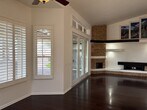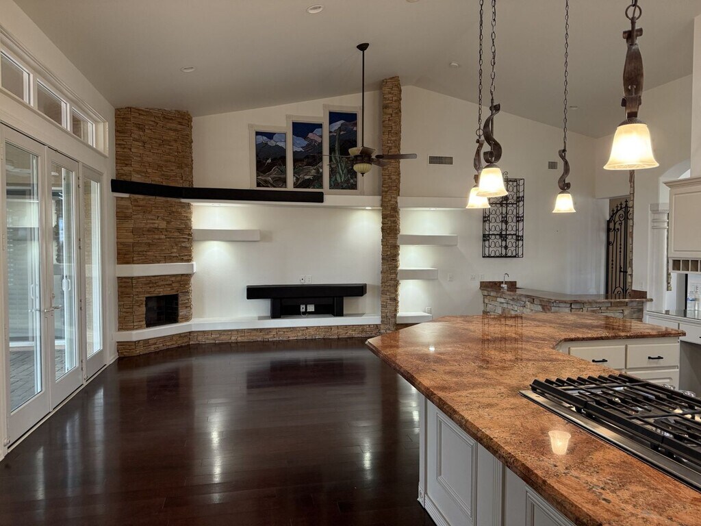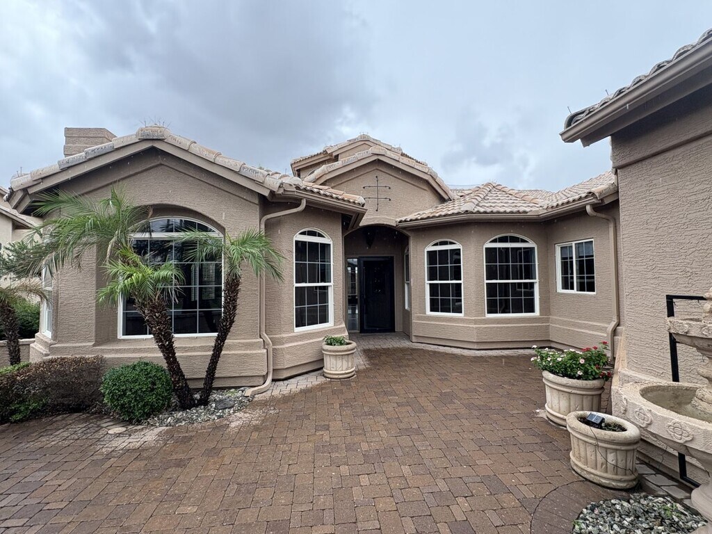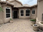 Custom Home in 55+ Cambria at Pebble Creek a luxury resort community. 3 bedrooms,3bath, den/office. Discover refined living in this beautifully upgraded home featuring a gated front courtyard with a tranquil water fountain and owned SOLAR. Step inside to an elegant foyer with stunning marble floors that flow into custom wood accents throughout. The newly remodeled kitchen boasts a spacious island, granite countertops, and ample cabinetry—perfect for entertaining. Lots of Natural lighting, sunken wet bar. Enjoy the resort-style backyard complete with an outdoor gas fireplace, built-in bench seating, and a private spa for ultimate relaxation. Abundance of social & Rec Opportunities. Your Dream home Awaits!