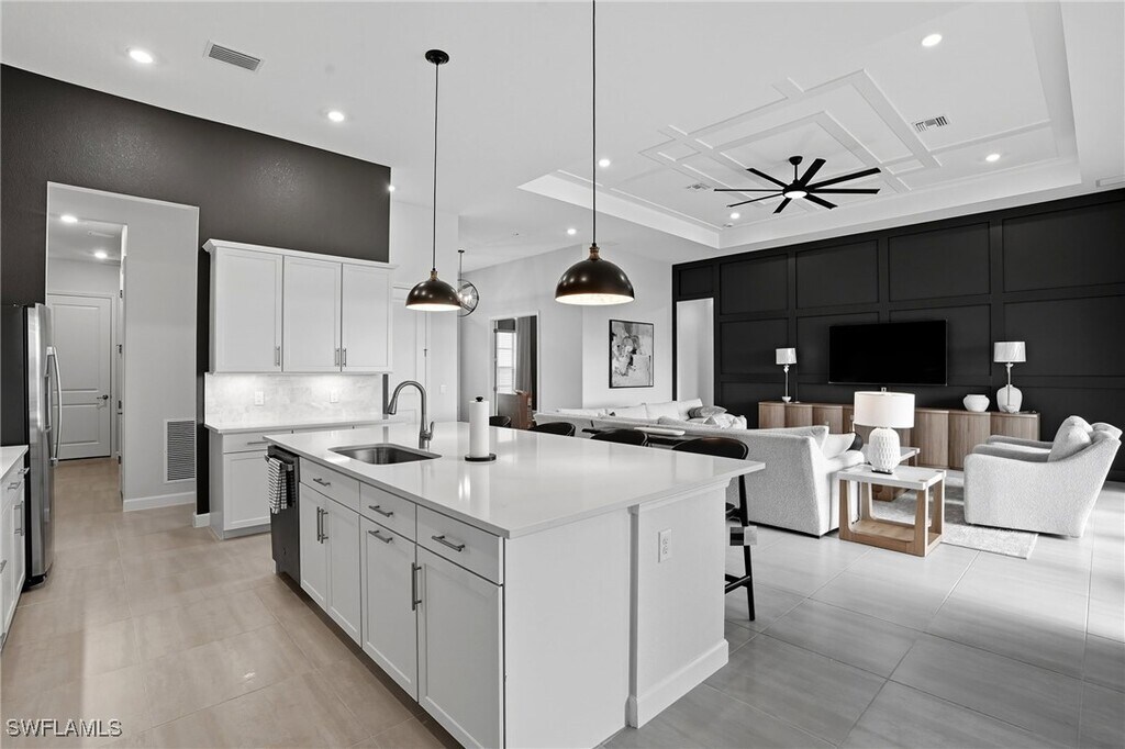 ***Webb's Reserve Golf & Country Club at Babcock Ranch*** GOLF Membership *** Welcome to Sunny Sky’s Retreat,located in Webb's Reserve Golf & Country Club at Babcock Ranch. This stunning single-story estate blends elegance with resort living. The home has 3 Bedrooms Plus a Den and 3.5 Bathrooms. Be greeted by an open floor plan where the great room flows through sliding glass doors to your private lanai,pool,and spa. The owner’s suite features direct patio access. Two additional bedrooms are placed on the opposite wing to preserve privacy. A den offers flexibility as an office or additional sleeping for guests. Enjoy upscale finishes: stainless steel appliances and gas cooktop. Outside,the property is equipped with an outdoor kitchen,paver walkways,and lush landscaping. You also gain access to Webb's Reserve Golf Course. Additional Transfer Fees & Cart Fees Apply.